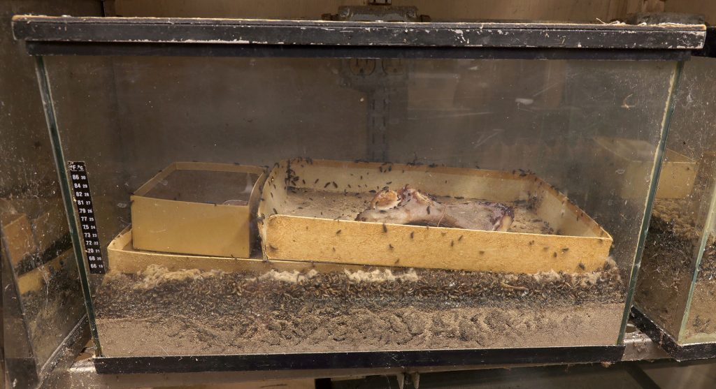 Flesh-eating Dermestid Beetle colony at the Florida Museum bone prep lab at the Florida Museum. Florida Museum photo by Zachary Randall