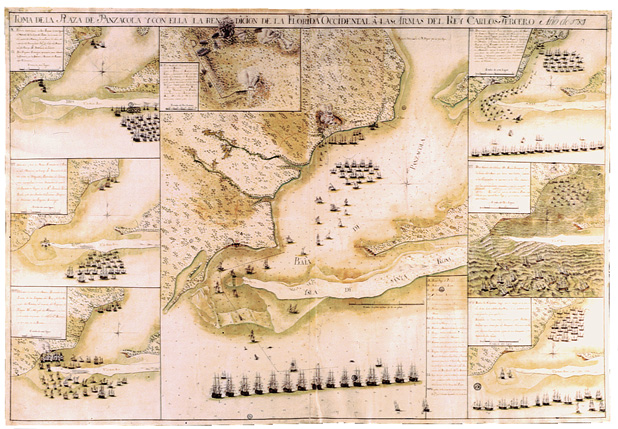 Pensacola under attack by Spanish ships in 1781.