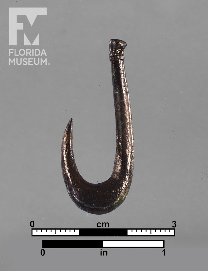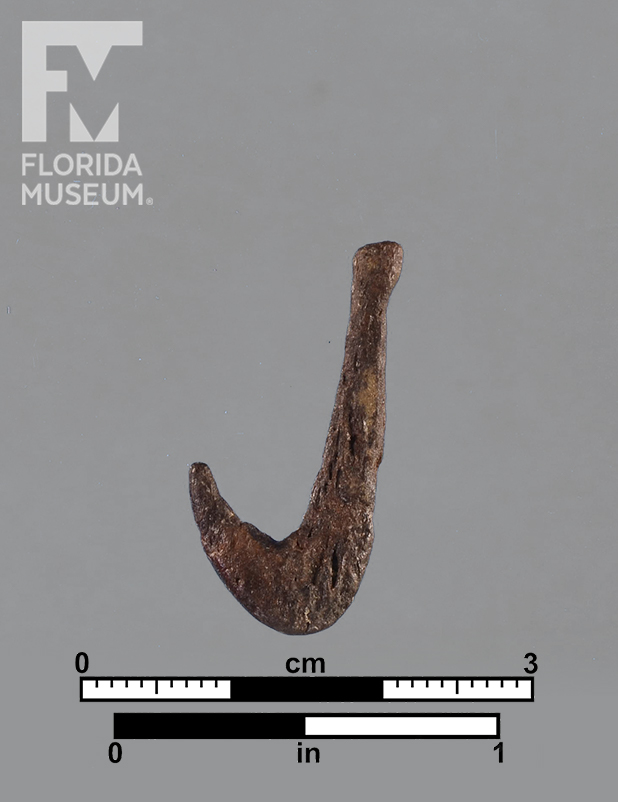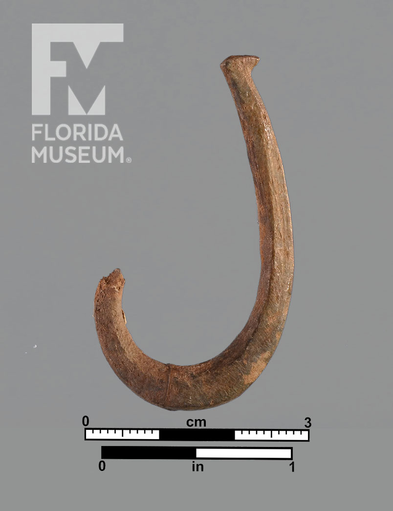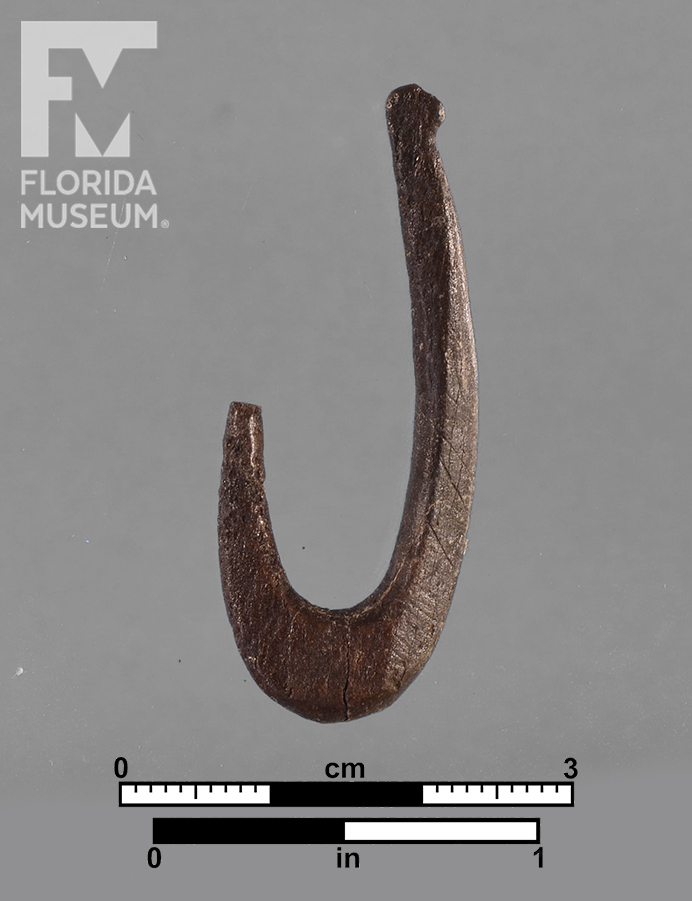 Welcome to the worked faunal bone and ivory collection. This gallery highlights the Fishhooks from this collection that are unique and rare. Hook-and-line fishing technology is among the various methods used to capture fish by indigenous peoples and other communities spanning thousands of years from as long ago as 5500 B.P. These Florida fishhooks were found in river deposits where they were used rather than terrestrial sites where they were likely crafted. They are similar in form yet reveal a unique technological and stylistic variability. Mammals, such as deer and raccoon, and bird long bones were selected to manufacture the single-piece preform or blank, which were then crafted by cutting, abrading, splitting, and grooving into fishhooks.