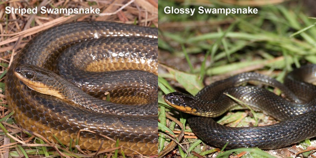 Striped Swampsnake. Photo courtesy of Todd Pierson. Glossy Swampsnake. Photo courtesy of Luke Smith.