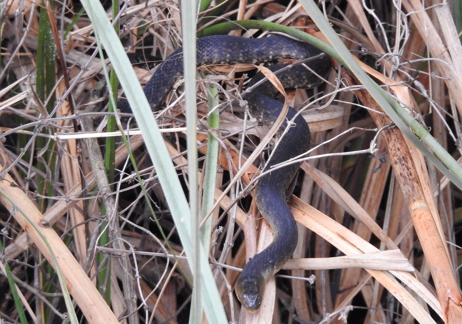 Florida Green Watersnake (Nerodia floridana)Non-venomous Florida Green Watersnakes are dark green with small dark speckling and have small scales between the eye and the scales on the upper lip. They are only found east of Okaloosa County in the Panhandle.