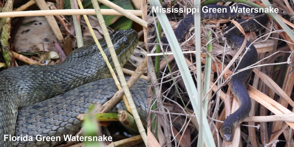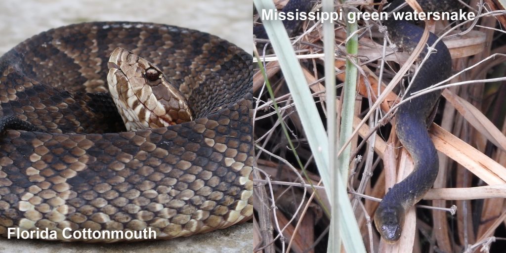 Florida Cottonmouth. Photo courtesy of Luke Smith. Mississippi Green Watersnake. Photo courtesy of Eric B.
