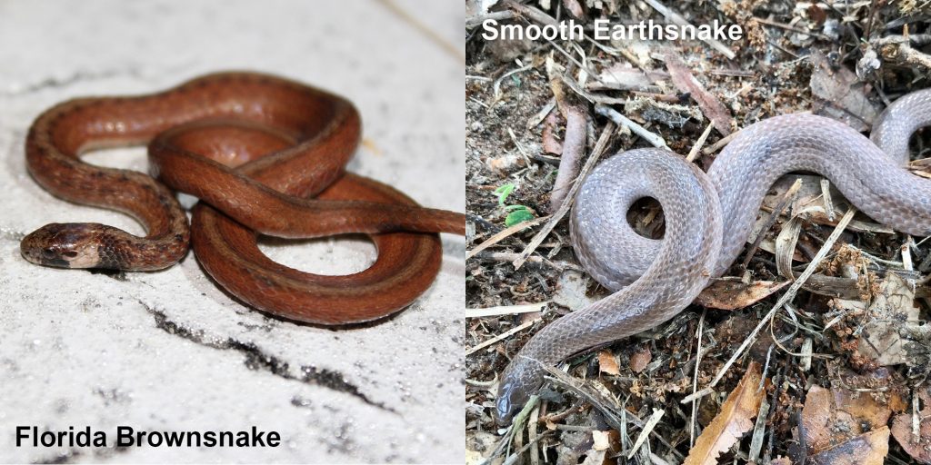 Florida Brownsnake. Photo courtesy of Luke Smith. Smooth Earthsnake. Photo courtesy of cassiethegardener/iNaturalist