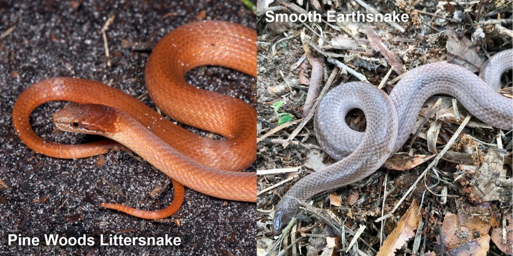 Pine woods snake. Photo courtesy of Todd Pierson. Smooth Earthsnake. Photo courtesy of cassiethegardener/iNaturalist