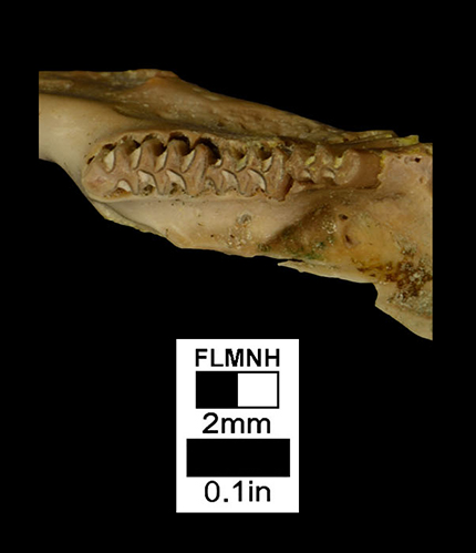 Bell et al. (2014) placed Haile 16A in the late Blancan based on the presence of Sylvilagus webbi, Orthogeomys propinetis, and Atopomys texensis. Morgan and Hulbert (1995) assigned Haile 16A to what is now termed Ir1 due to its having more derived species in a number of rodent genera than are found in Florida Blancan sites, including Erethizon, Microtus, Peromyscus, Sigmodon, and Synaptomys. Atopomys texensis is known from the Irvingtonian of Texas, Maryland, and West Virginia, so its presence at Haile 16A should not be used to justify a Blancan age. Overall the small mammal fauna of Haile 16A shows greater similarity with Florida Ir1 sites than it does with late Blancan sites. The absence of Mammuthus is not considered relevant, as Haile 16A completely lacks proboscideans.