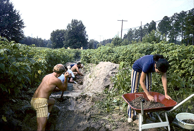 Figure 1. Initial excavations at the Love Site in 1974, in between the okra. Image by David Webb.