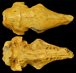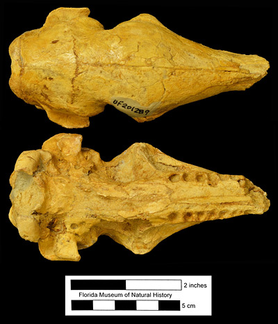Figure 5. UF 201289, nearly complete skull of Dasypus bellus from Inglis 2A, Citrus County, Florida; early Pleistocene. Above, dorsal view; below, ventral view. This is the most complete skull known for the species.