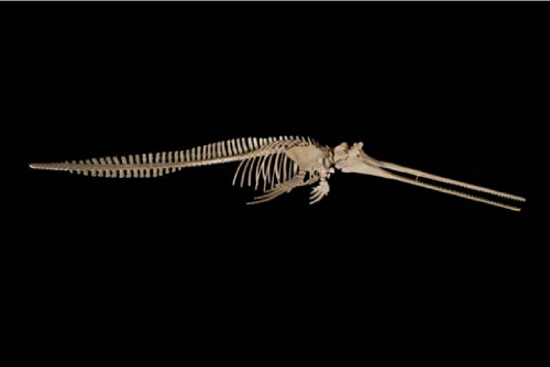 Steve and Suzan were then asked to create displays for the new exhibit “Florida Fossils: Evolution of Life and Land.” When asked which of the 18 or so mounts they created for the exhibit he was most proud of, Steve had a hard time picking one. When pressed, he selected the “beaked dolphin” (Pomatodelphis inaequalis) because that one required that he reconstruct the skull from small fragments along with casts of other pieces they had in the collections; the rest of the body, flippers and all, is a metal sculpture.