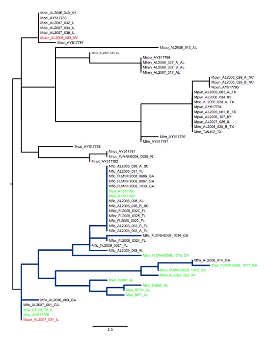 Museum scientists are using tissue samples from throughout eastern North America to look for evidence of intergradation between the Florida Bass and the Largemouth Bass and, from those data, determine the taxonomy.
