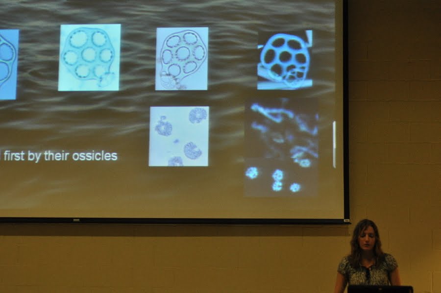 In addition to all the arrivals and departures. We also participated in the 2010 UF Marine Biology Symposium. Many of us presented talks or posters of our various and sundry research interests. My data were a mess and needed a lot of time and attention to polish up enough in time to present at the symposium. Other things that I might have been meaning to do (i.e. posting to this blog) may or may not have fallen to the wayside as a consequence, but I’m sure you understand. At the conference, the cuke team swept the undergraduate awards with Julie, Laura, and J.D. all winning prizes. Here is a glimpse of Julie’s first place presentation with some nice ossicle pictures. Try and soak in the knowledge.