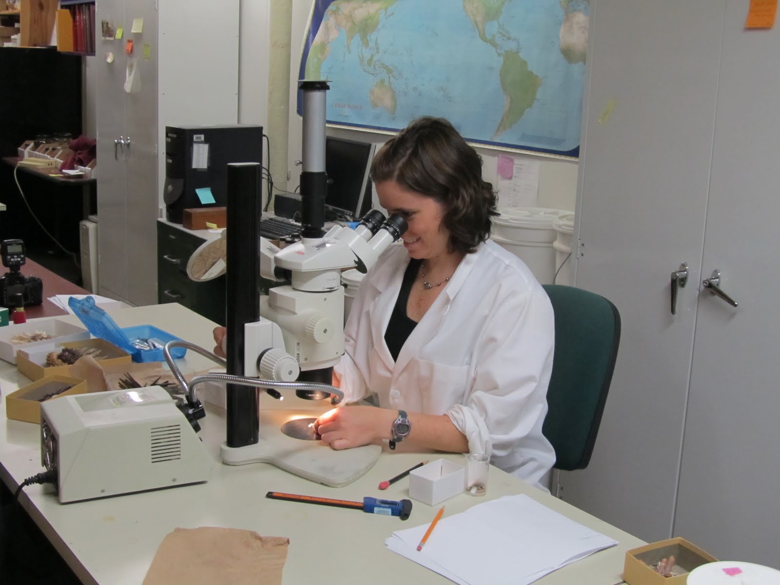 In between trips to the field, rehousing, cataloging, photo matching, Geneiousing, DNA-extracting, subsampling, photographing, reorganizing, ethanol-procuring, supply-ordering, loan-processing and so forth, Sarah managed to find time for an sea urchin project in which she used genetic data and morphology to elucidate the evolutionary changes in spine shape and pattern in a group of sea urchins. In this photo she’s scrutinizing pedicellariae under the microscope.
