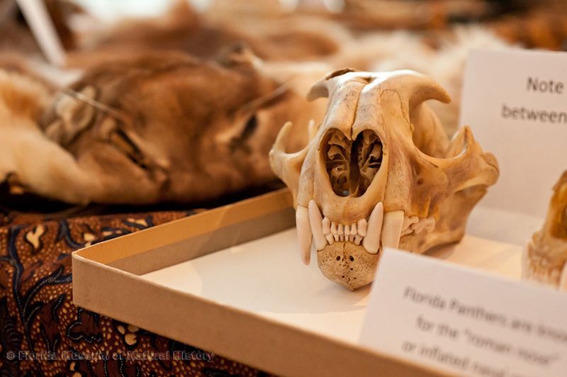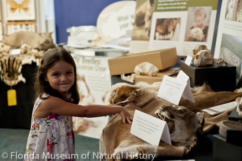 Each year the Florida Museum celebrates Earth Day by showcasing specimens from our research collection that the public rarely gets to see. This is our open house, if you like. All of the researchers and students in Mammalogy participate and each table has a theme. The students get together to devise the themes and choose the specimens that will be on display. Because we do this ever year, we try to keep the content changing and interesting to the public. In the images below we had two sets of tables, one highlighting Florida Panthers and one highlighting the common mammals of Florida. Both were a hit with the guests.