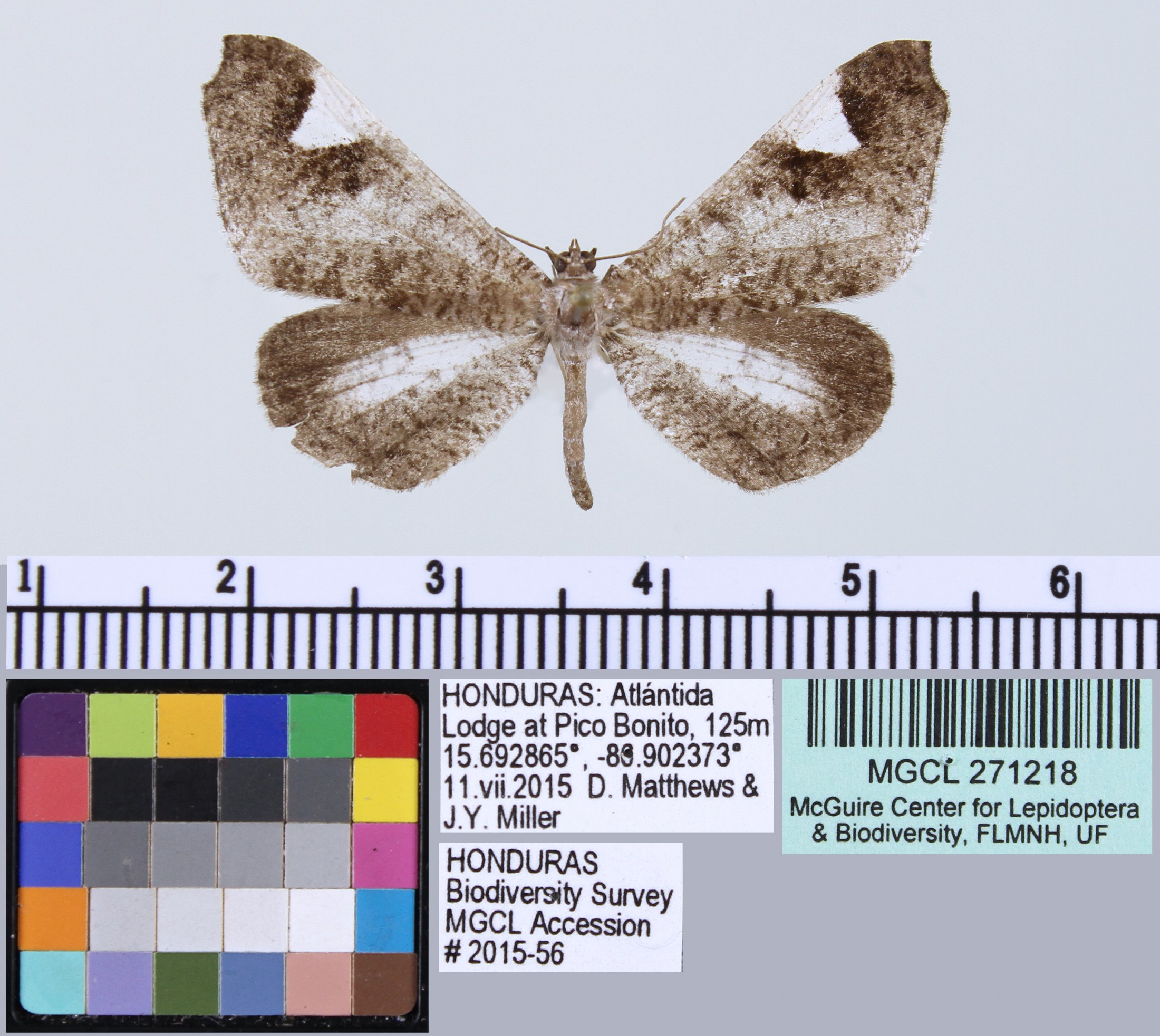 In 2018, the Kawahara lab and collaborators conducted in-depth DNA analyses of this fascinating family using known genes from 13 specific loci (chromosome locations) so they could determine relationships of the species within the family as well as affirm their relationships to other butterflies. They confirmed the findings of previous molecular studies indicating that Hedylidae are more closely related to skippers than to the other butterfly families. Within Hedylidae, they found three clades (groups) of species nested within two branches of the resulting phylogenetic tree, with Macrosoma tipulata and Macrosoma semiermis each as separate basal branches. This study also examined the distribution of “diel” (24 hour) behavior within the family by mapping the occurrence of nocturnal and diurnal activity on the phylogenetic tree. Rather than a single transition from diurnal to strictly nocturnal behavior in the ancestors of Hedylidae, the study results indicated a more gradual transition to nocturnality with an intermediate step of both nocturnal and diurnal behavior.