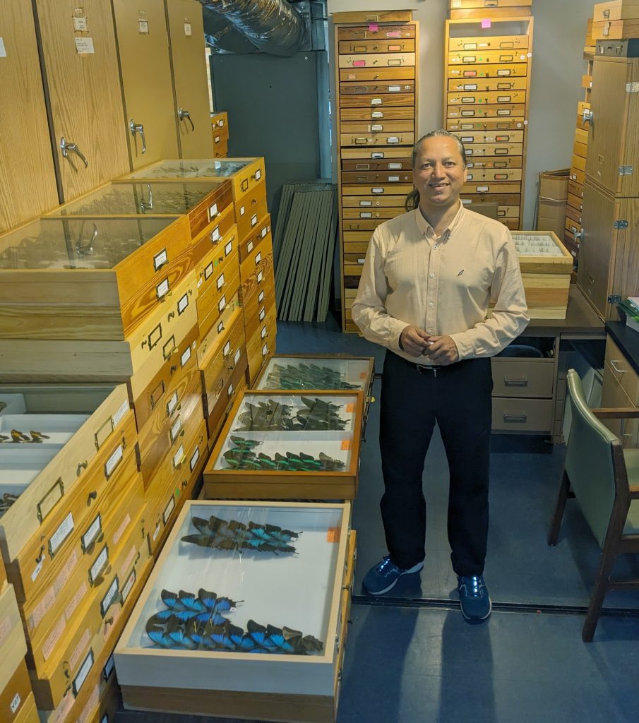 Krushnamegh Kunte, an Associate Professor with the National Centre for Biological Sciences, Bengaluru, India, visited in November to work on various studies involving swallowtail butterflies of the genus Papilio from around the world. Along with imaging selected specimens for his research, he and McGuire Center Curatorial Assistant Marcela Diaz Zamora made tremendous progress sorting and curating our swallowtail collection. Dr. Kunte, who is familiar with the Center from his visits more than a decade ago as a graduate student and postdoc, will return later this year to continue sorting our swallowtail collections and mentoring Marcela in curation of this family.
