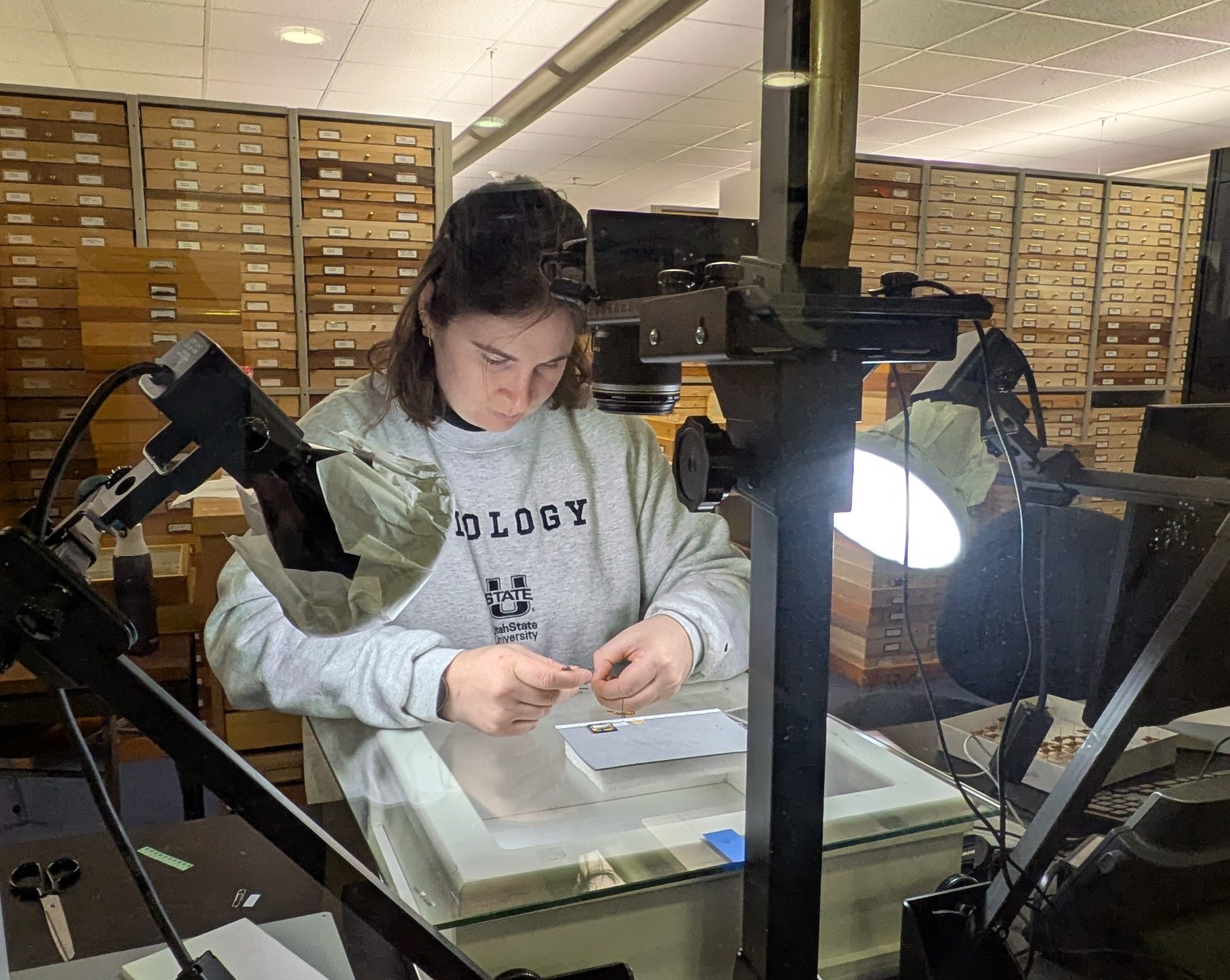 The Sand Mountain Blue butterfly, Euphilotes pallescens arenamontana, lives on a single Nevada dune system, making it incredibly vulnerable to threats like habitat loss from off-road vehicles and climate change. Alia Donly studies its population structure and genetic diversity using both living butterflies and historical specimens from museum collections. The vast and special archives like the one at the McGuire Center let her compare past and present populations to see how much genetic diversity has been lost and what remains today. Her goal is to use this evidence to show that the subspecies is at serious risk—and to ultimately get this subspecies on the endangered species list, federally protected, and get conservation measures in place before it is lost.