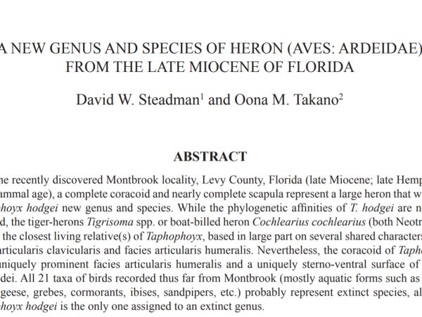 So far, 18 different species of birds have been identified from Montbrook fossils by Florida Museum Curator of Ornithology, David … Continue