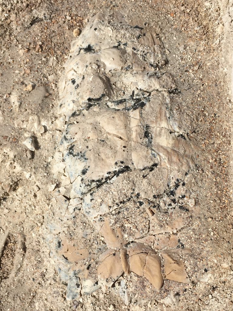 “Unfortunately, I have yet to see one while it is being applied, but it was cool to see how they are removed from the ground and loaded into the van after they have set. One plaster jacket near us, pictured below, became another project for myself and another student. After we flipped the jacket over, we helped remove some of the dirt to make it easier to carry and to search for any extra fossils. Unfortunately, we didn’t find too many extra fossils, but it was an interesting and fun experience! I can’t wait til next time where I can continue making discoveries. I still can’t wait to hopefully see a plaster jacket application, as the process behind that fascinates me! Until next time!” – Charlie Bisbee