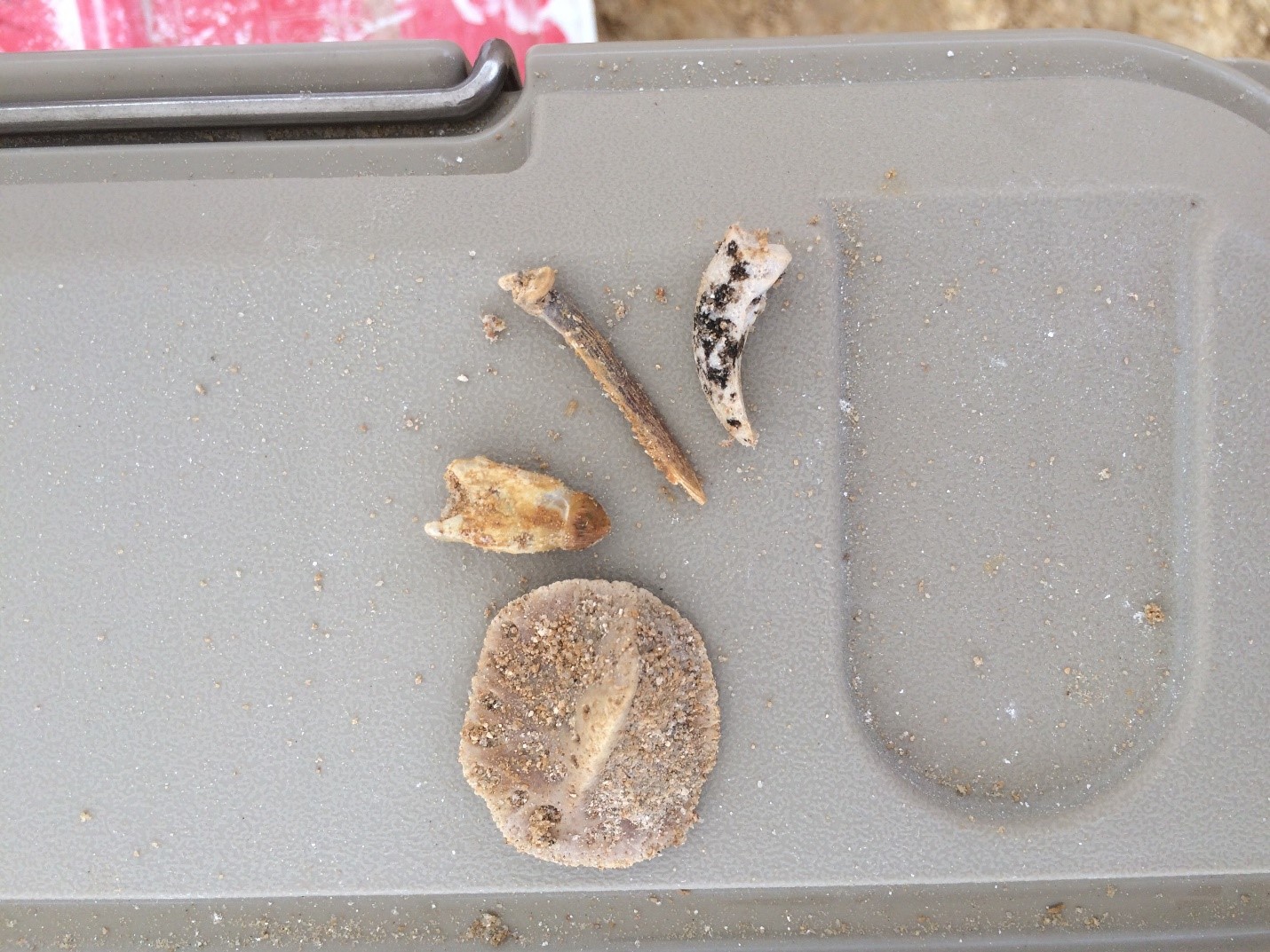 When we arrived at the dig site, I was immediately struck by how much mud had been washed in with the rain during the previous week. We started the day by setting up the site and removing the tarps covering areas currently being excavated. Once more volunteers arrived, we began using small shovels to remove excess sediment that had washed in with the rain. Once I had dug out a new section with the shovel, I began using a screwdriver to dig and probe for fossils. All of the fossils I found were from a small area with coarse sand. I learned that coarser sand is indicative of an area of the ancient site where water flowed with relatively large force—large enough to move bones as well as coarse sand. My favorite fossil that I found was the claw of an alligator snapping turtle.