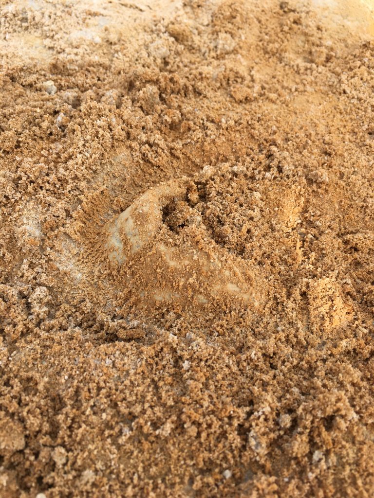“As the day progressed, I became so absorbed in my digging that I didn’t even remember to eat my lunch. Not only was my bag of fossils filled, but I had discovered what was believed to be a fully intact turtle shell. I was told that we would need to make a plaster jacket in order to retrieve my shell from the ground but was instructed to dig out the full perimeter of the shell. Never could I have imagined to discover a full skeleton, it was so thrilling. Yet, probably the most thrilling part was that I wasn’t alone. At the Montbrook site it felt like everyone around me were also uncovering marvelous and full fossils. This site blew away all my expectations for fossil digging sites. I had the realization that we are all in the midst of scientific discoveries and I am able to discover full and extremely relevant fossils. When the day passed and I was forced to go back home, I had the most incredible drive back. As soon as I pulled out of the site, I was surrounded with wild cows crossing the road. I drove down the road slowly with the biggest grin on my face. I had just had the most incredible earthly experience. Between uncovering the beautiful history in the sand below my feet, to absorbing the beautiful environment, and then finally enjoying the company of the animals around me, this was the best vacation I could have asked for. I cannot wait to go back and am so excited to see what I will uncover next!” – Kelsea Rose