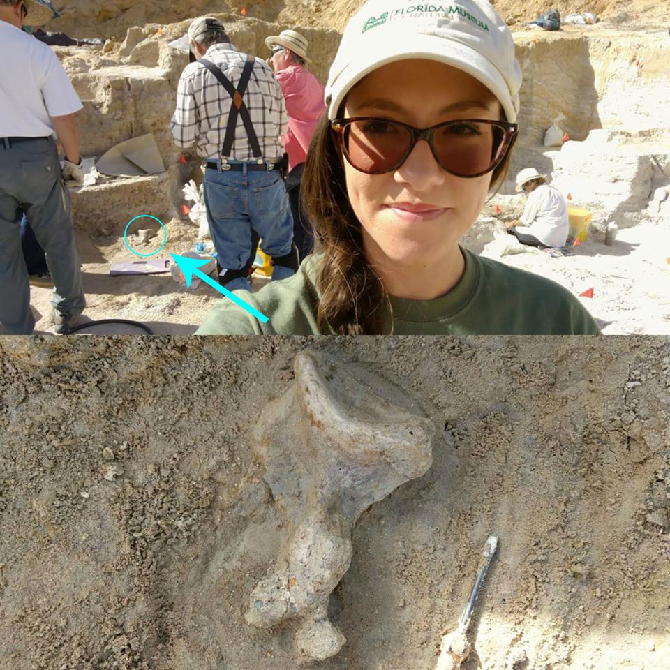 Sue Tennant found something big in her square! It’s a gomphothere scapula out here at Montbrook. Also, it’s #museumselfie day, hence the selfie… MuseumSelfie Day on site at Montbrook