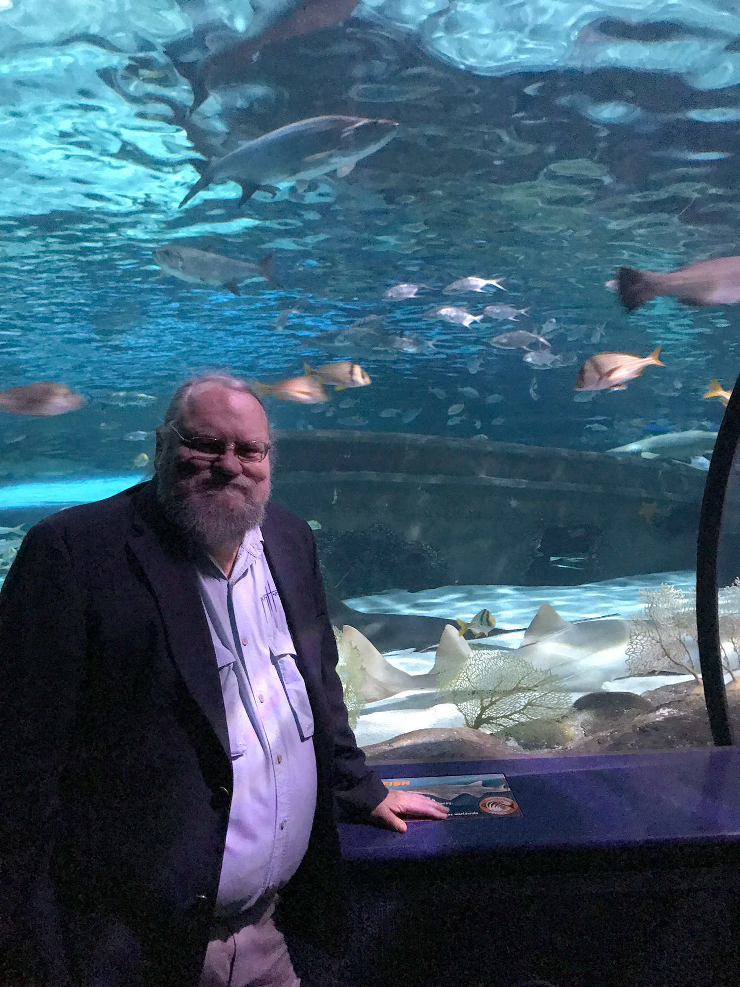 “George (Burgess) and I traveled to the Ripley’s Aquarium of Myrtle Beach in order to help host the event and spread the good word on sawfish. The day was filled with outreach events including a shark/sawfish feeding by the aquarium staff, a sawfish presentation by George, and educational activities and discussions with the public from George and me.