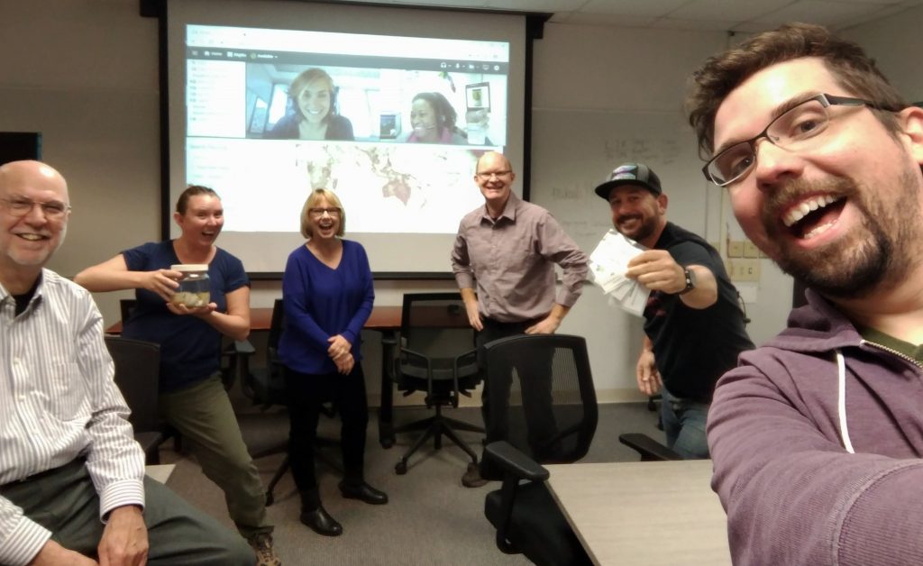 This year’s department winner was our Invertebrate Paleontology Collection! You can’t see it, but they’re so committed to their team photo that they’re wearing matching shirts!