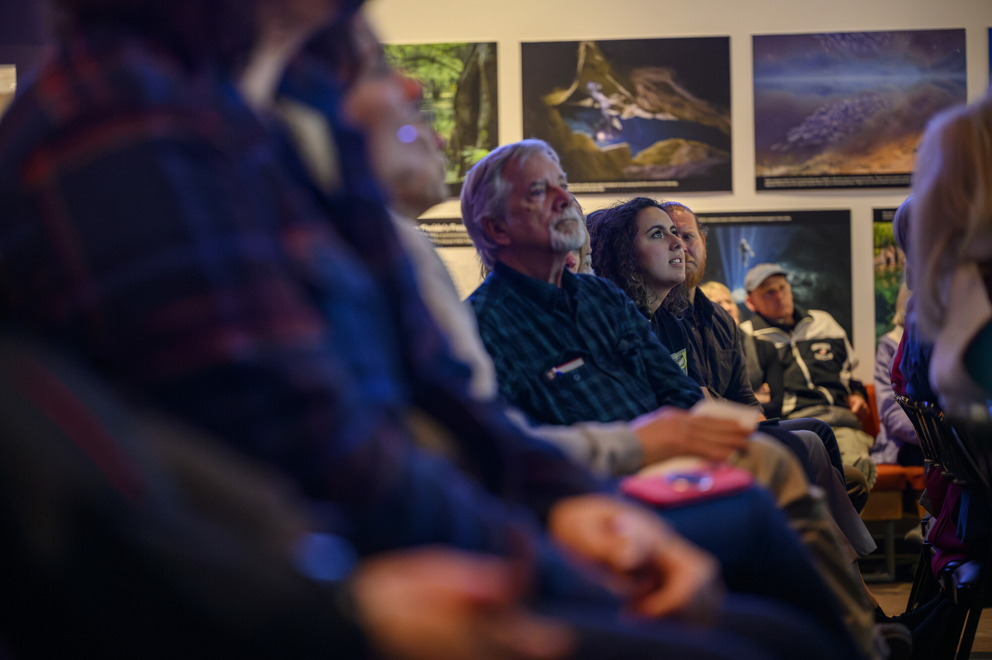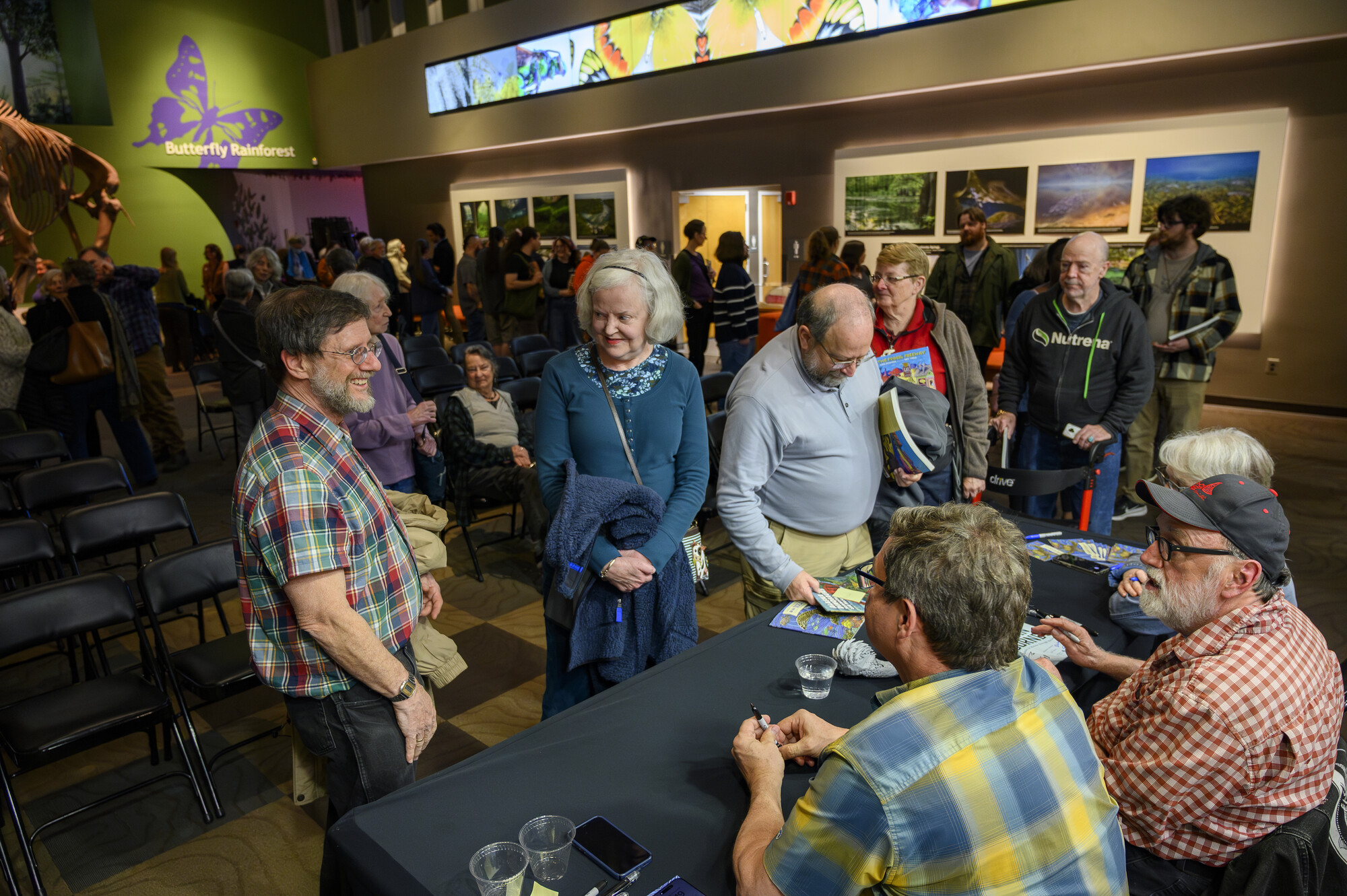 Florida Museum members, staff and visitors enjoyed the presentation as well as socializing before and after with Kirk and Ray and Museum scientists. For just a few hours, our Denny Gallery was the center of a small community of people sharing their excitement for fossils and the stories they tell us about our past.