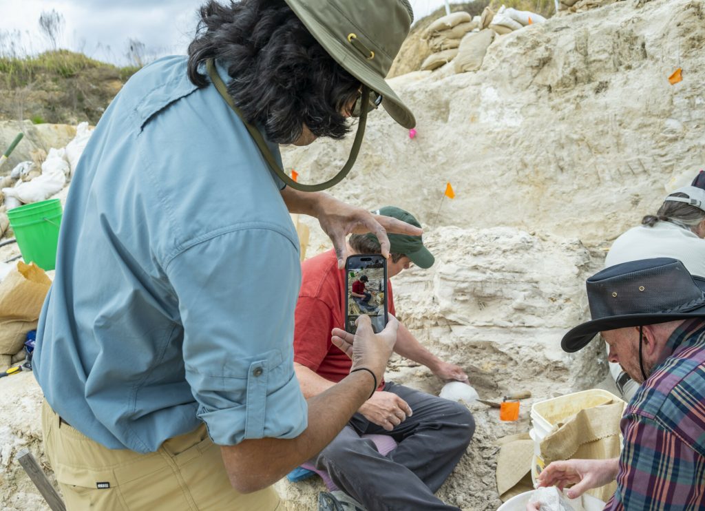 Jon Bloch and Advait Jukar, curators of our vertebrate paleontology collection, hosted a dig day at Montbrook to bring our guests into the sunbaked pit. Our active dig site is often scattered with clusters of volunteers patiently brushing and picking their way into the gritty soil as familiar shapes emerge. Thousands of hours of work by hundreds of hands have brought a vast library of fossils from this unassuming tract of earth.