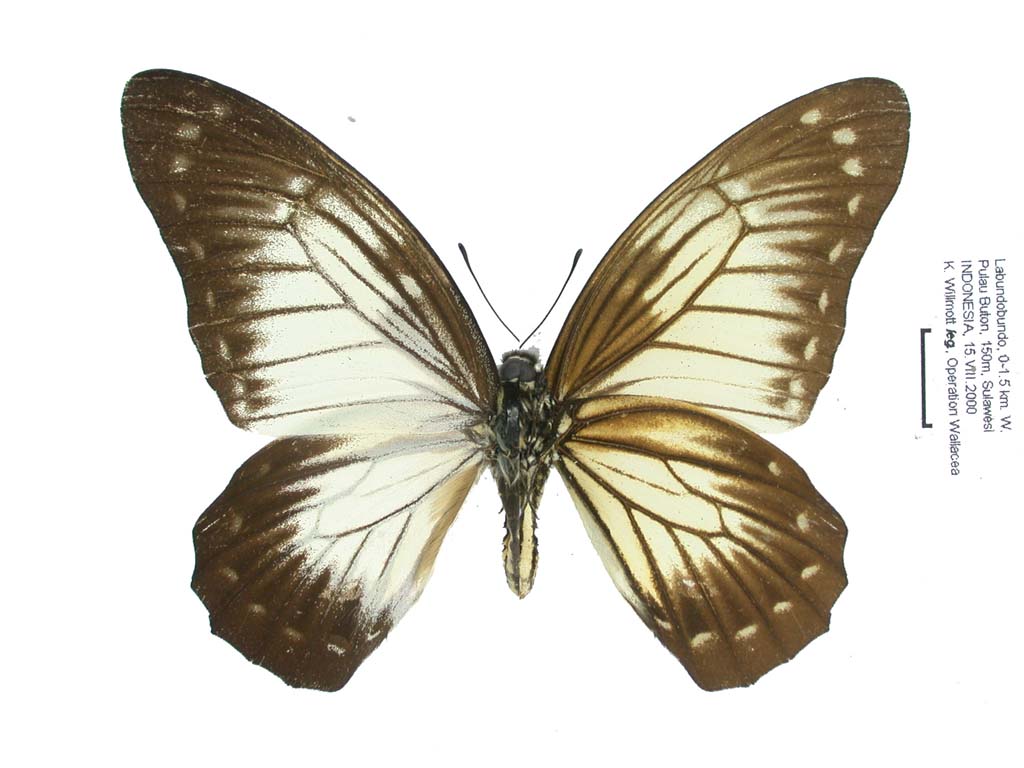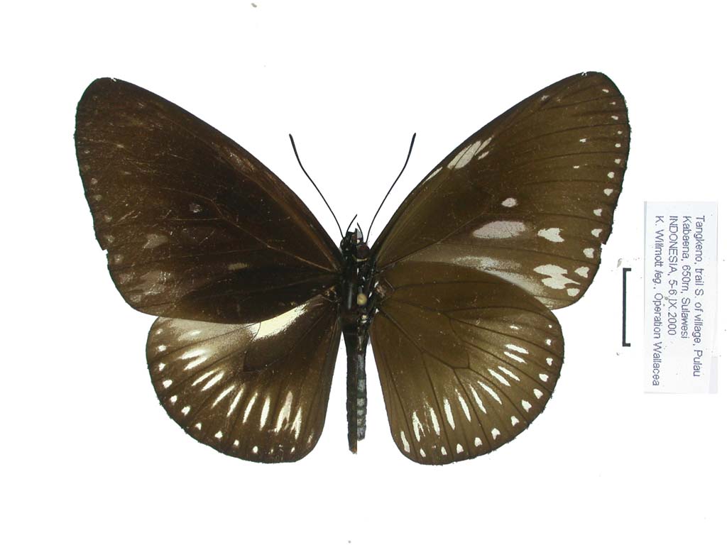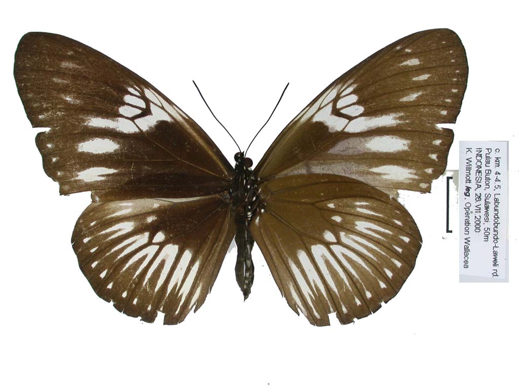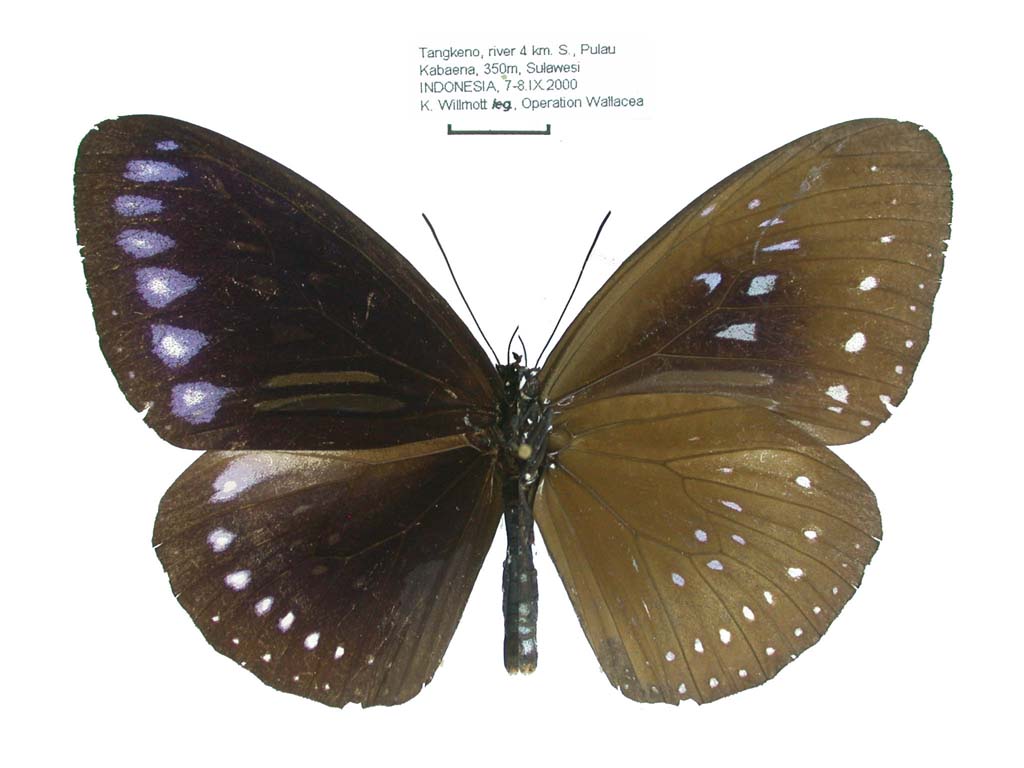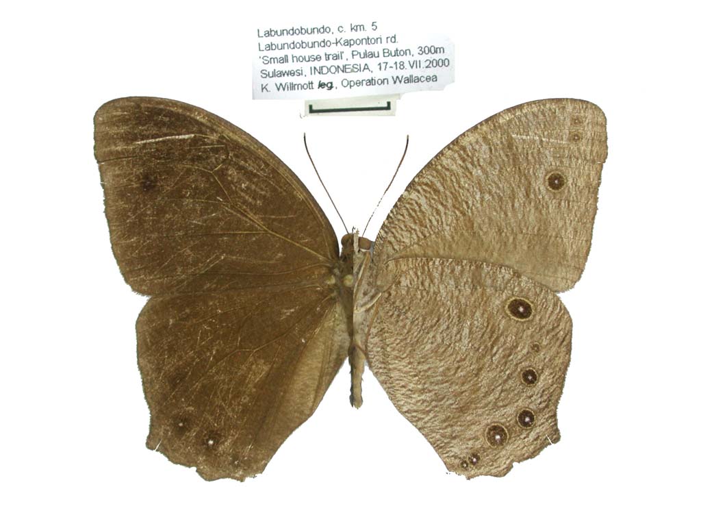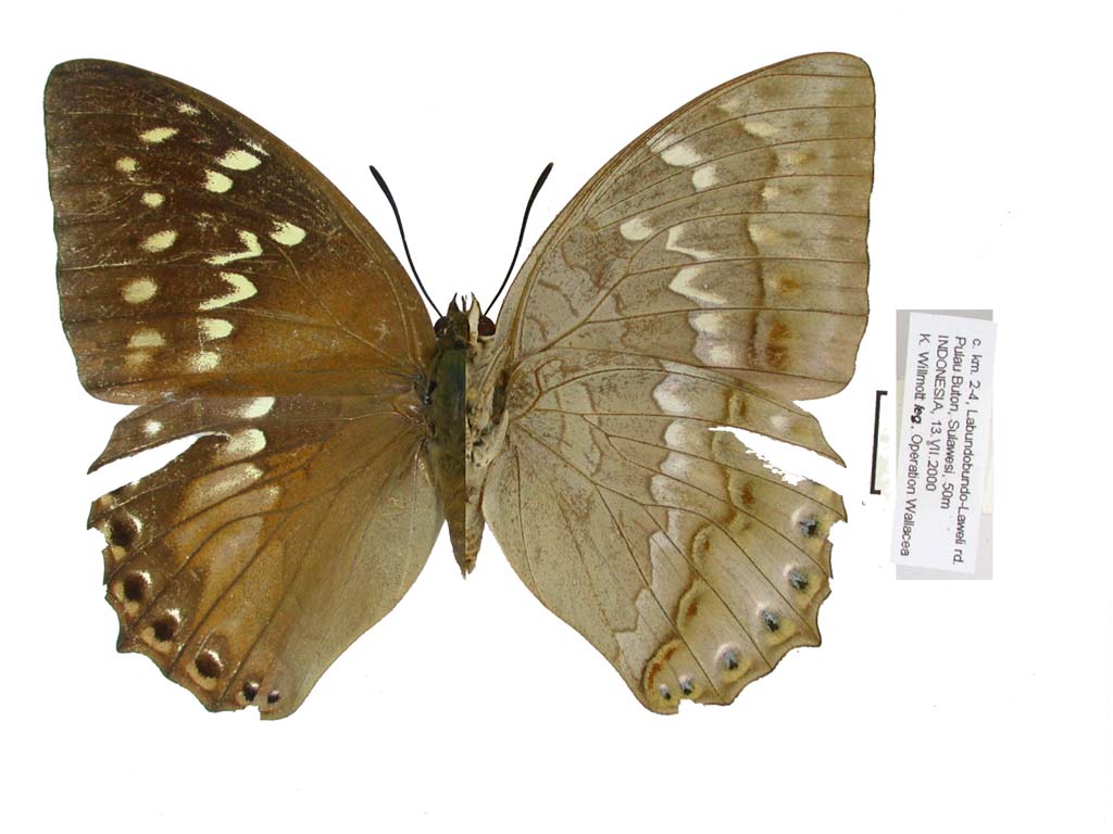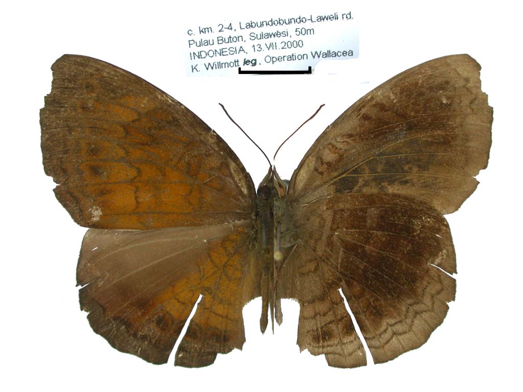 Records are based on field work by Keith Willmott and other volunteers for Operation Wallacea on mainland, Buton, Kabaena and Pulau Hoga (Tukangbesi) during summer 2000 and: Vane-Wright, R. I., & R. de. Jong. 2003. The butterflies of Sulawesi: annotated checklist for a critical island fauna. Zoologische Verhandlingen, 343: 1-267.