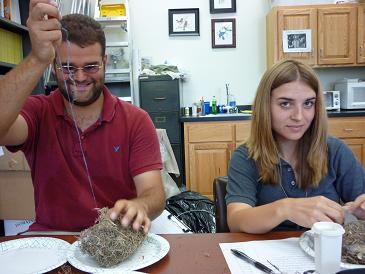 Although coprophagy is widely spread among vertebrate, it is not well known why and when animals eat feces. We are using the Northern Mockingbird to have a better understanding of why and when birds eat their nestling fecal sacs. Moreover, we are exploring the possible mechanism that adult birds may use to know when they should eat or remove their nestling feces. We are experimentally testing one of the hypotheses (nutritional), which suggest that incubating birds eat fecal to restore energy loss during incubation. It is known that fecal sac nutritional quality decrease with nestling age. However it is unlikely that birds are able to asses this by just looking at the fecal sacs, so the must be using other indication to know when to eat or remove their nestling feces. Download poster [PDF]