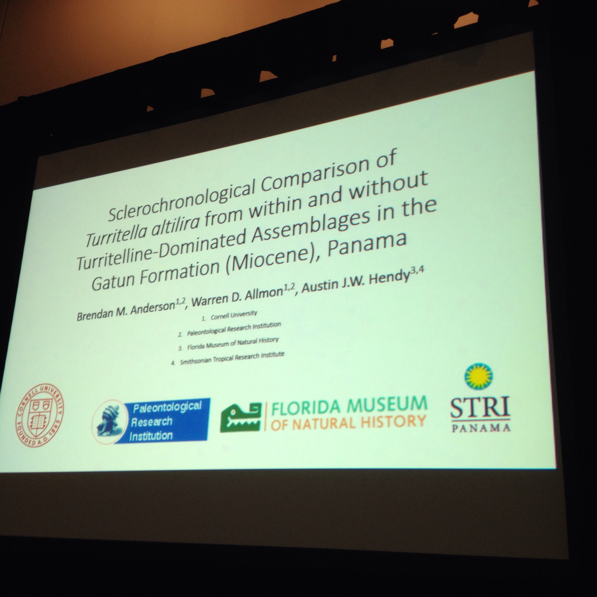 Brendan Anderson, who traveled to Panama with Austin Hendy last spring, is presenting on his research on turritellid snails – high spired, filter feeding mollusks. Anderson is a graduate student at Cornell University, and wrote an eNewsletter article (see flmnh web page) about his research in April of this year.