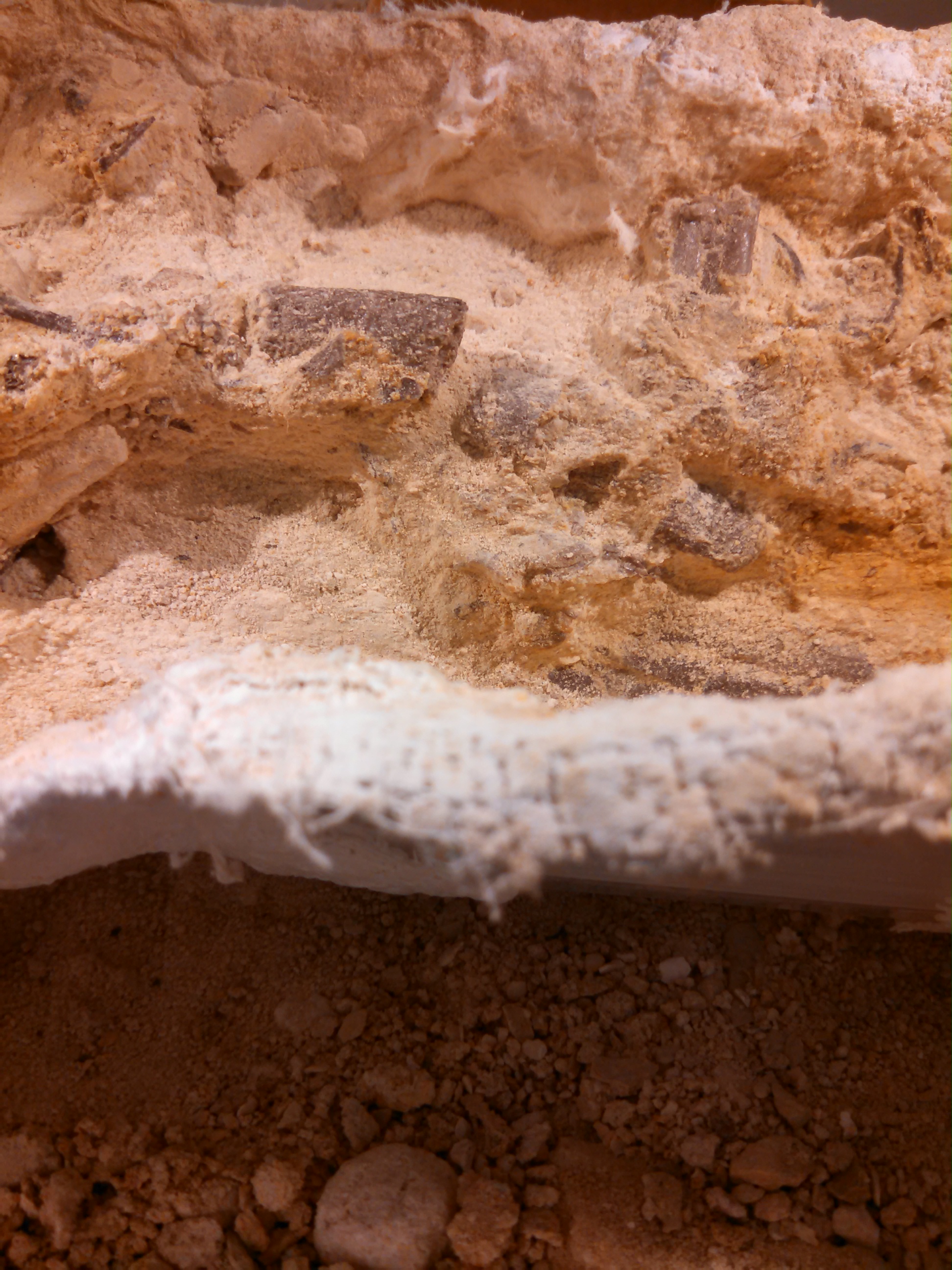 I glued broken bone fragments back into complete specimens using B-72, a mild adhesive that is reversible with acetone