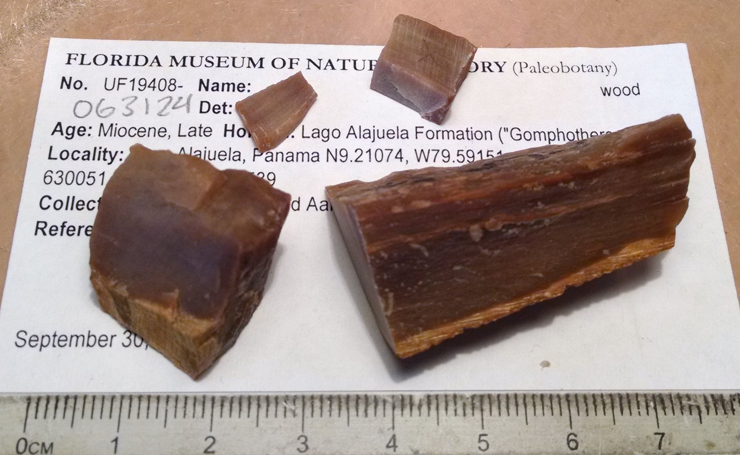 We’ve made the most headway with the fossil wood project. The wood was collected from the Miocene of Panama at Lago Alajuela and we’re working to describe them in enough detail that we can identify them and use their features to understand paleoclimate. So far we’ve definitively identified one wood to the family level.