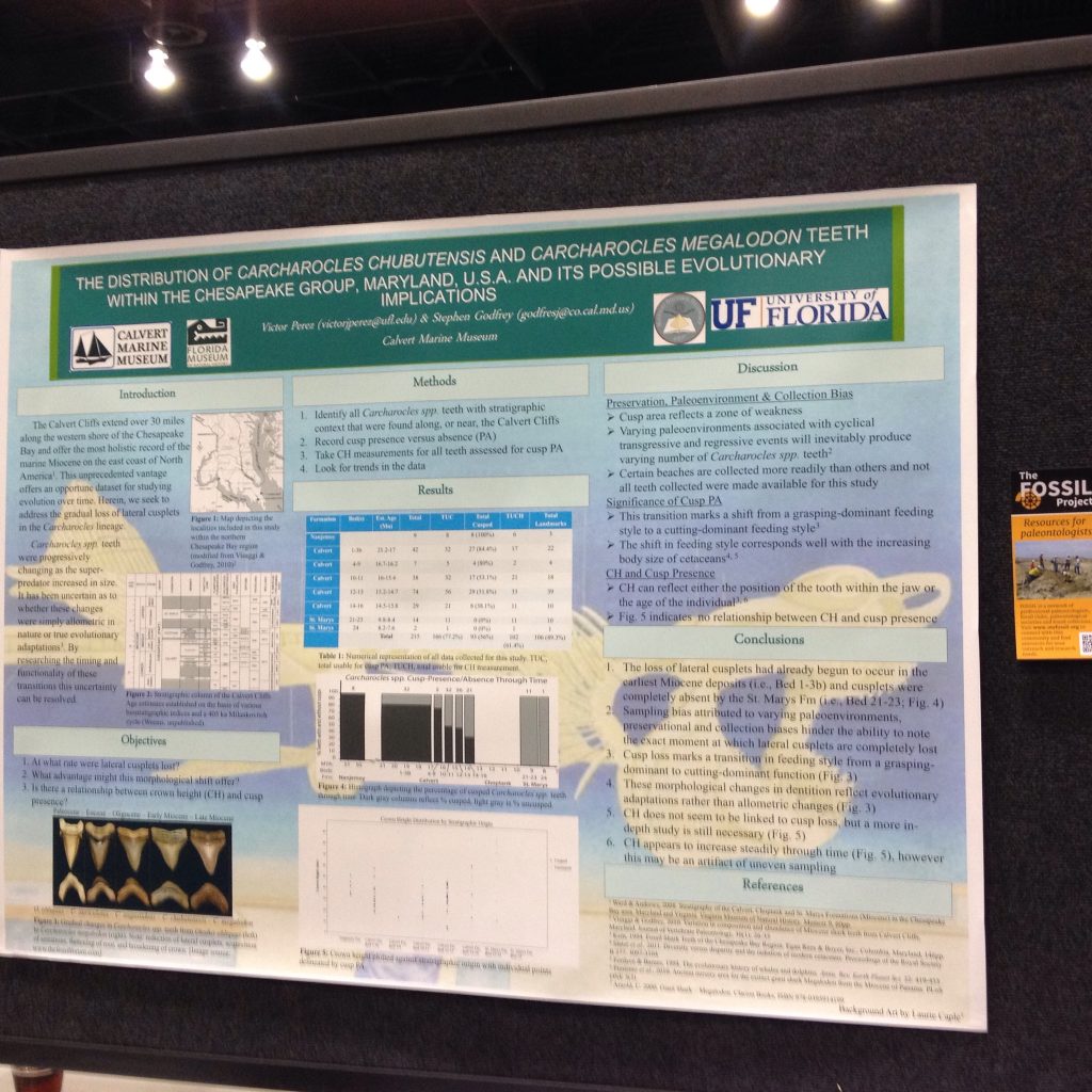 Stop by the poster hall tonight to meet with Victor Perez and hear him explain about his fossil sharks! Victor Perez with his poster Victor’s poster