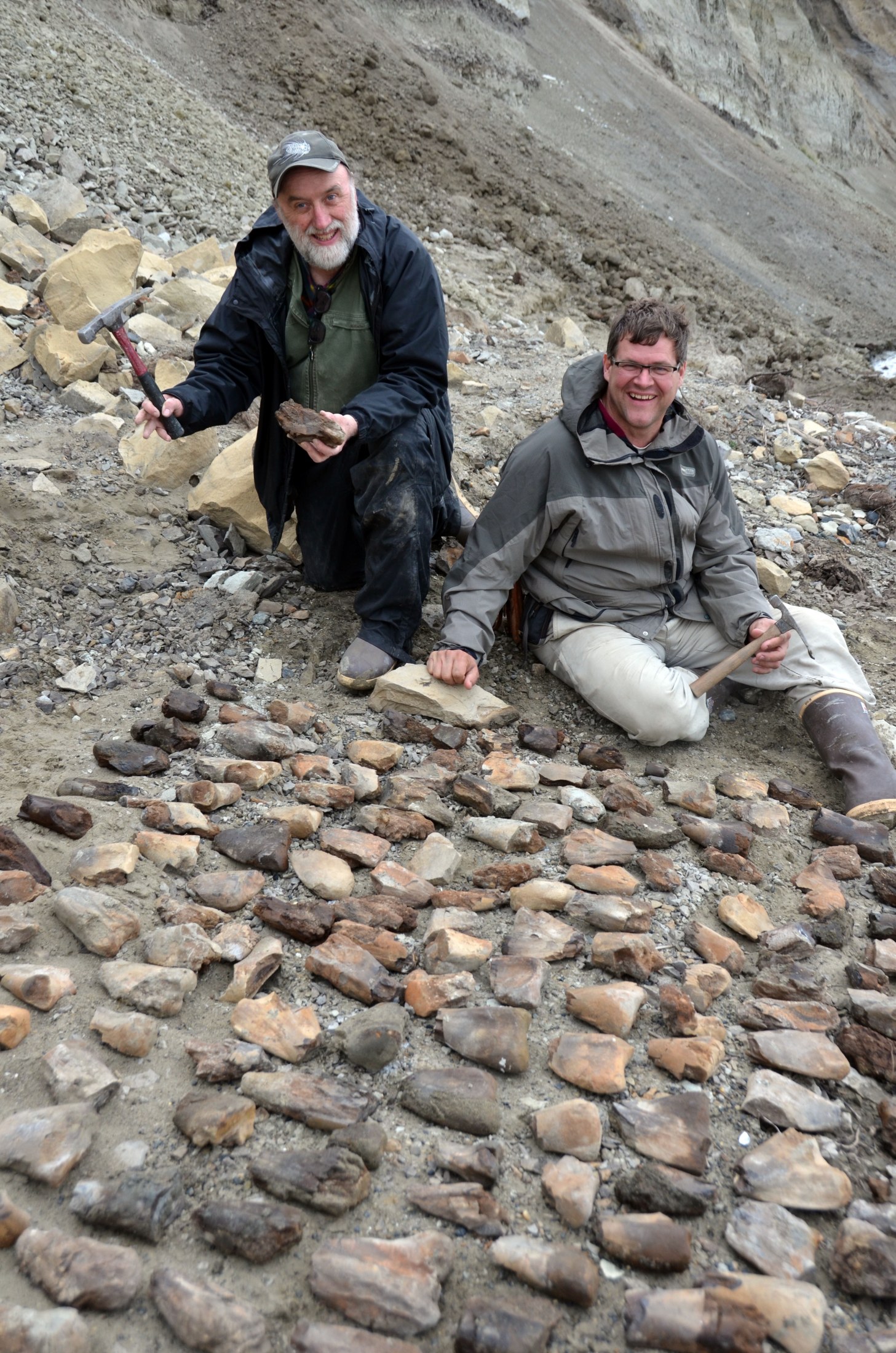 Johnson and Troll have collaborated on three books, “Cruisin’ the Fossil Freeway,” “Cruisin’ the Fossil Coastline” and their brand-new title published last month, “Alaska Dinosaurs, Mammoths and More,” using their unique combination of science and art to inform and entertain readers about fossils around the country. They also contributed to the creation of the traveling exhibit “Cruisin’ the Fossil Freeway with artist Ray Troll and paleontologist Kirk Johnson,” that was on display at the Florida Museum in 2012.