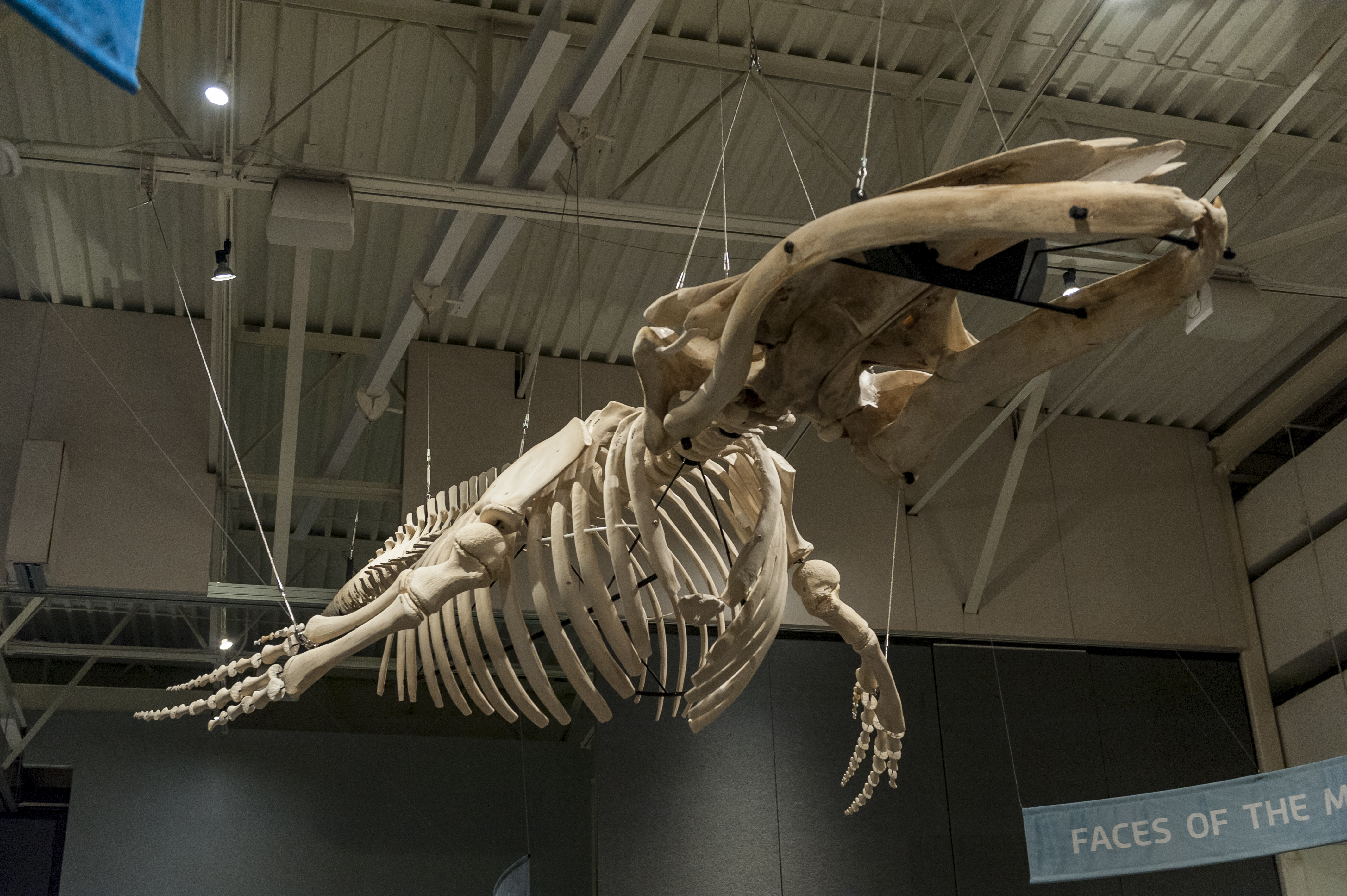 The Florida Museum of Natural History is featuring a rearticulated 26-foot-long juvenile male humpback whale skeleton suspended from the ceiling as part of its new “Rare, Beautiful and Fascinating” 100th anniversary exhibit, on display Sept. 23, 2017-Jan. 7, 2018, in Gainesville. ©Florida Museum photo by Kristen Grace