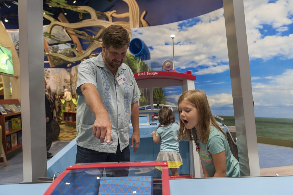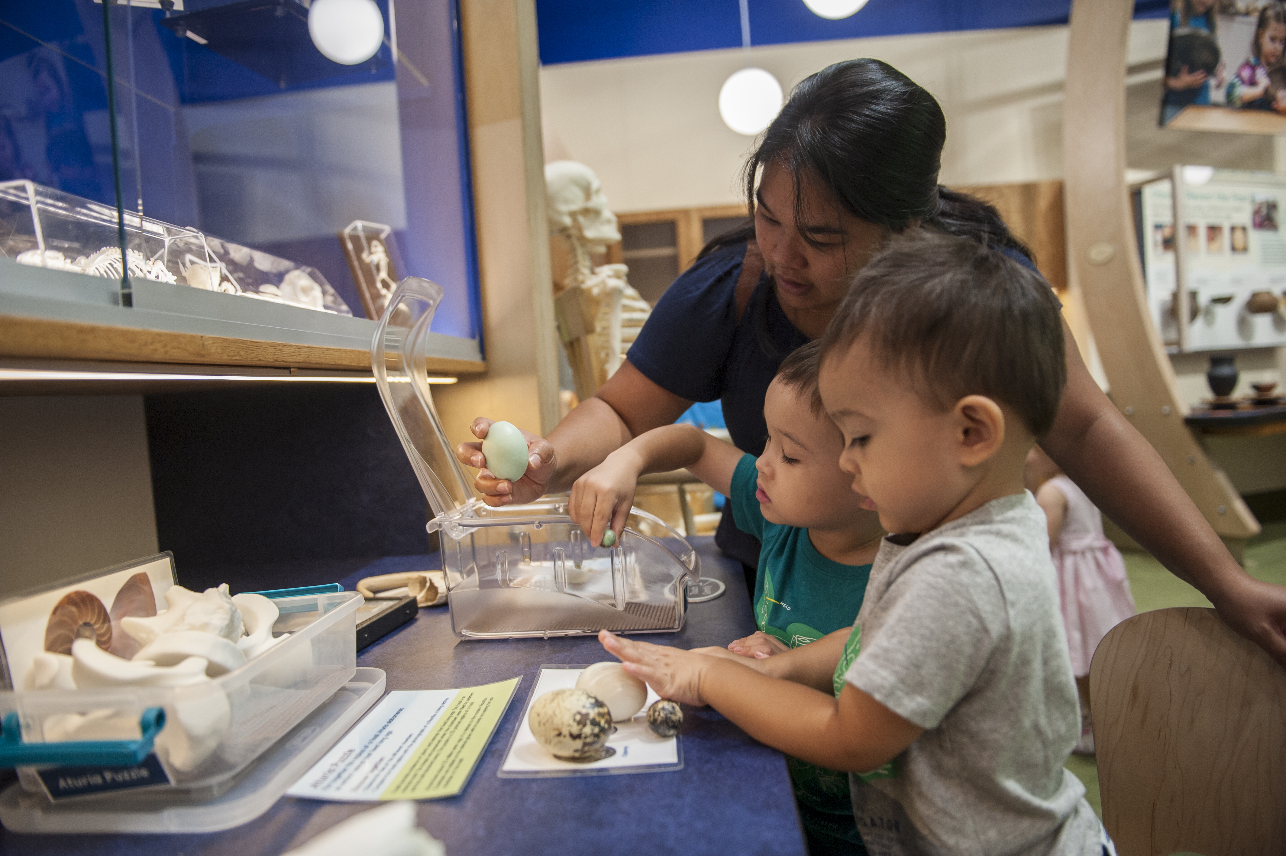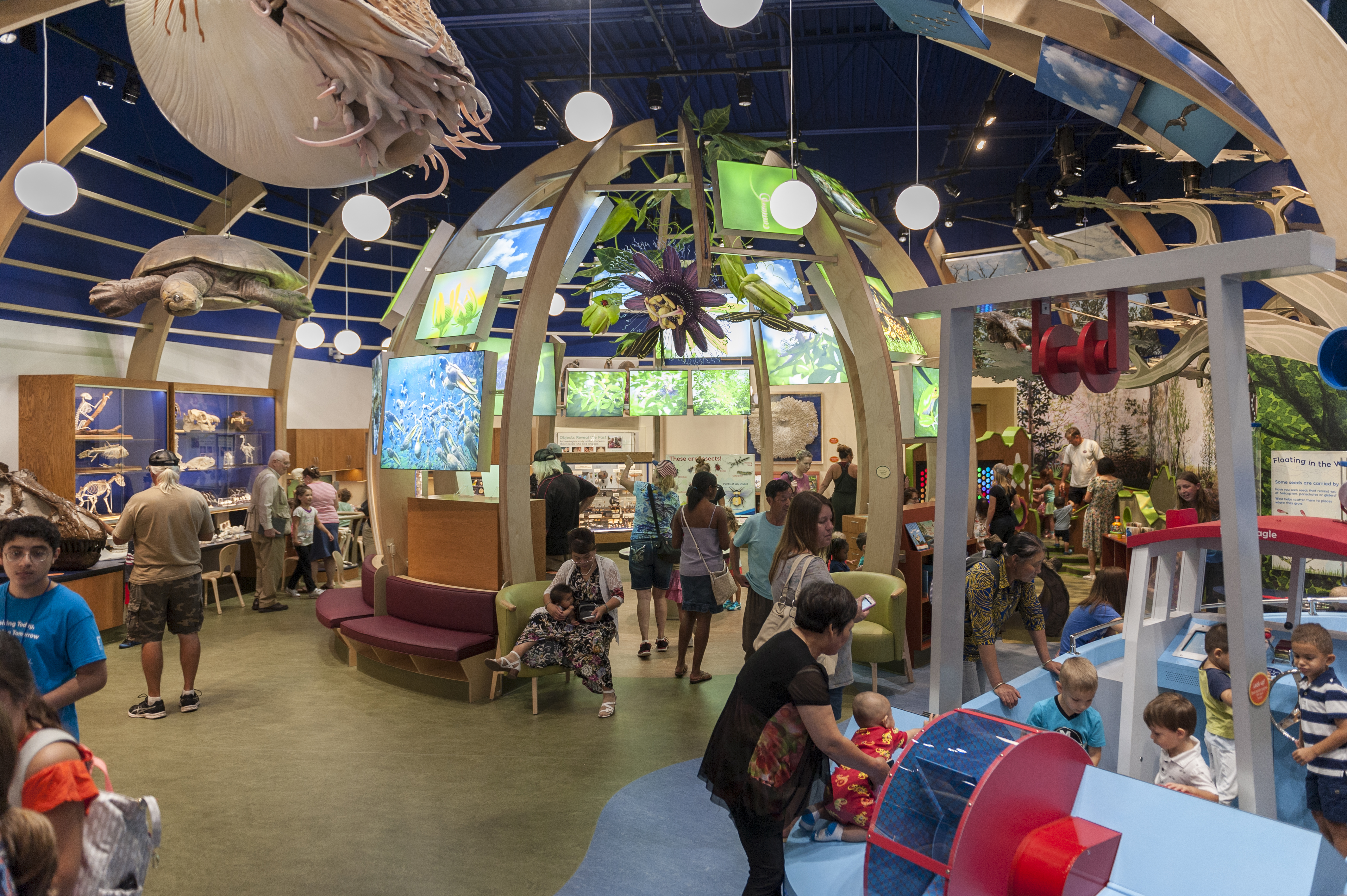 The Florida Museum of Natural History’s “Discovery Zone” exhibit allows children and their caregivers to engage in science-oriented interactives and experience display cases with stunning collections, true-to-scale touchable objects and various activity stations. ©Florida Museum photo by Kristen Grace