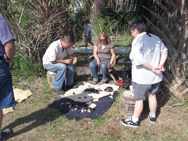 Dick Workman and Rick Tully demonstrated fiber technology and weaving, Terry Powell of St. Petersburg had an amazing display of Calusa shell and wood tools that he encouraged the public to try out. I demonstrated percussion flaking and pressure flaking of stone tools.