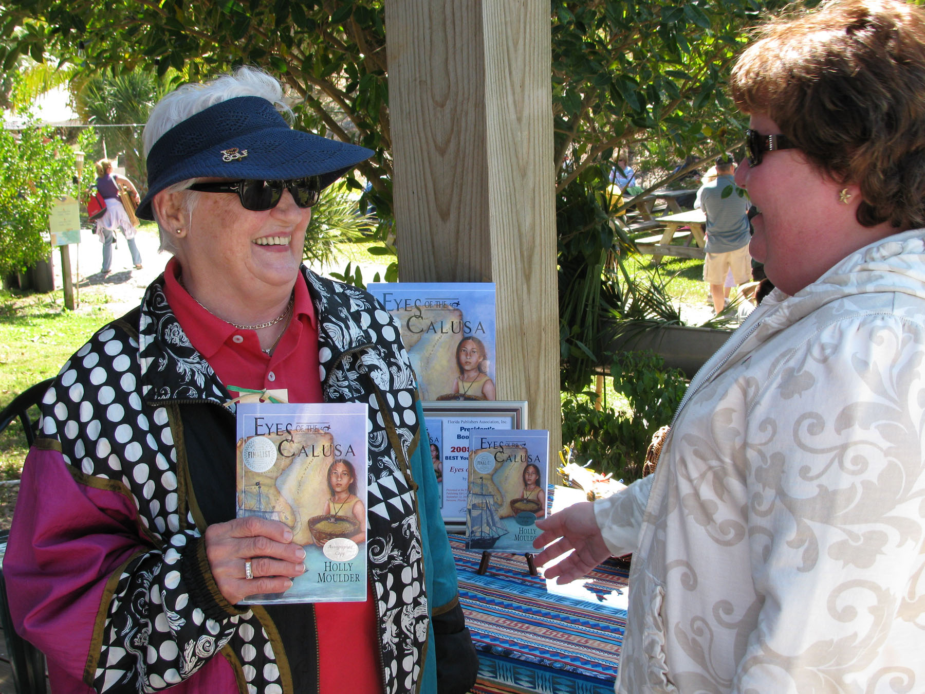 The classroom had exhibits on archaeology, archaeobotany, and zooarchaeology by Donna Ruhl, Irv Quitmyer, Melissa Ayvaz, Krista Church, Gypsy Price, Ryan Van Dyke, and Austin Bell. In the Authors and Storytellers tent, presentations were given by Ed Winn, Gene Toncray, Tom Joseph, Roothee Gabay, D.L. Havlin, Robin Brown, Holly Moulder, and John and Mary Lou Missal. In the Art and Technology area, there were demonstrations by Merald Clark and Cyndi Moncrief, Felix Macaguani Rodriguez, Dick Workman, John Beriault, Robin Brown, Janelle Lowry, and David Lainko. Elizabeth Neily, Marty Haythorn, and Linda Davis exhibited their art works, and John McKinney made palm-leaf baskets and hats.
