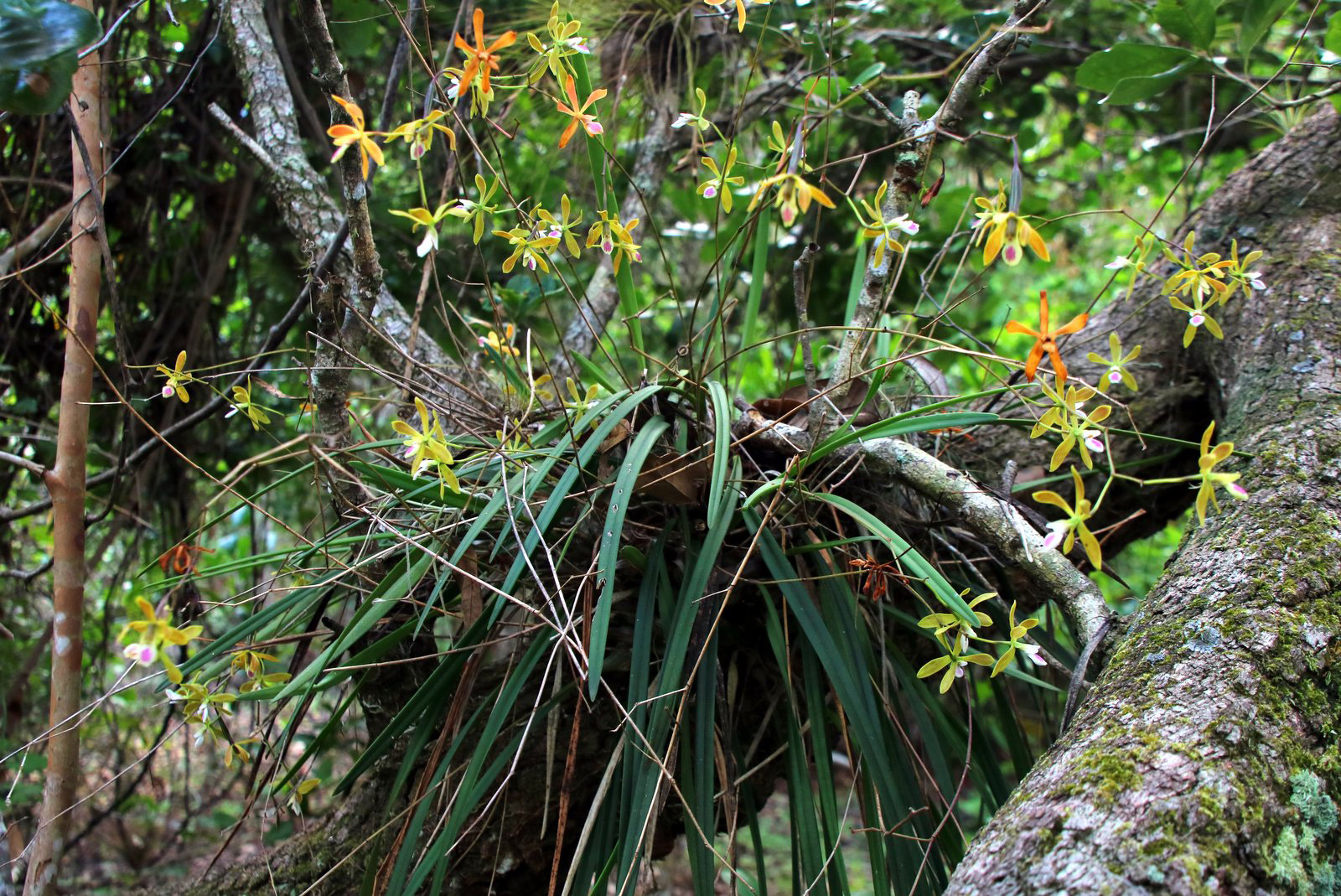 A pair of pileated woodpeckers raised a brood of three young in a hole in a dead standing tree (snag) that we purposefully created when we removed invasive exotic species from the Smith Mound parcel. Two osprey pairs fledged chicks, one from a nest in a different snag and one from a human-made platform. A yellow-billed cuckoo, perhaps having flown directly from Cuba, found respite during migration among the native trees and was added for the first time to our bird list. A butterfly orchid is blooming deep off the Trail in an area where previously it was thwarted by an overstory of invasive exotic plants that we removed. In these cases, and more, we made thoughtful decisions to support biodiversity through restoration projects. These are reassuring successes as we embark on planning how we will operate in the future amid heightened public health concerns.