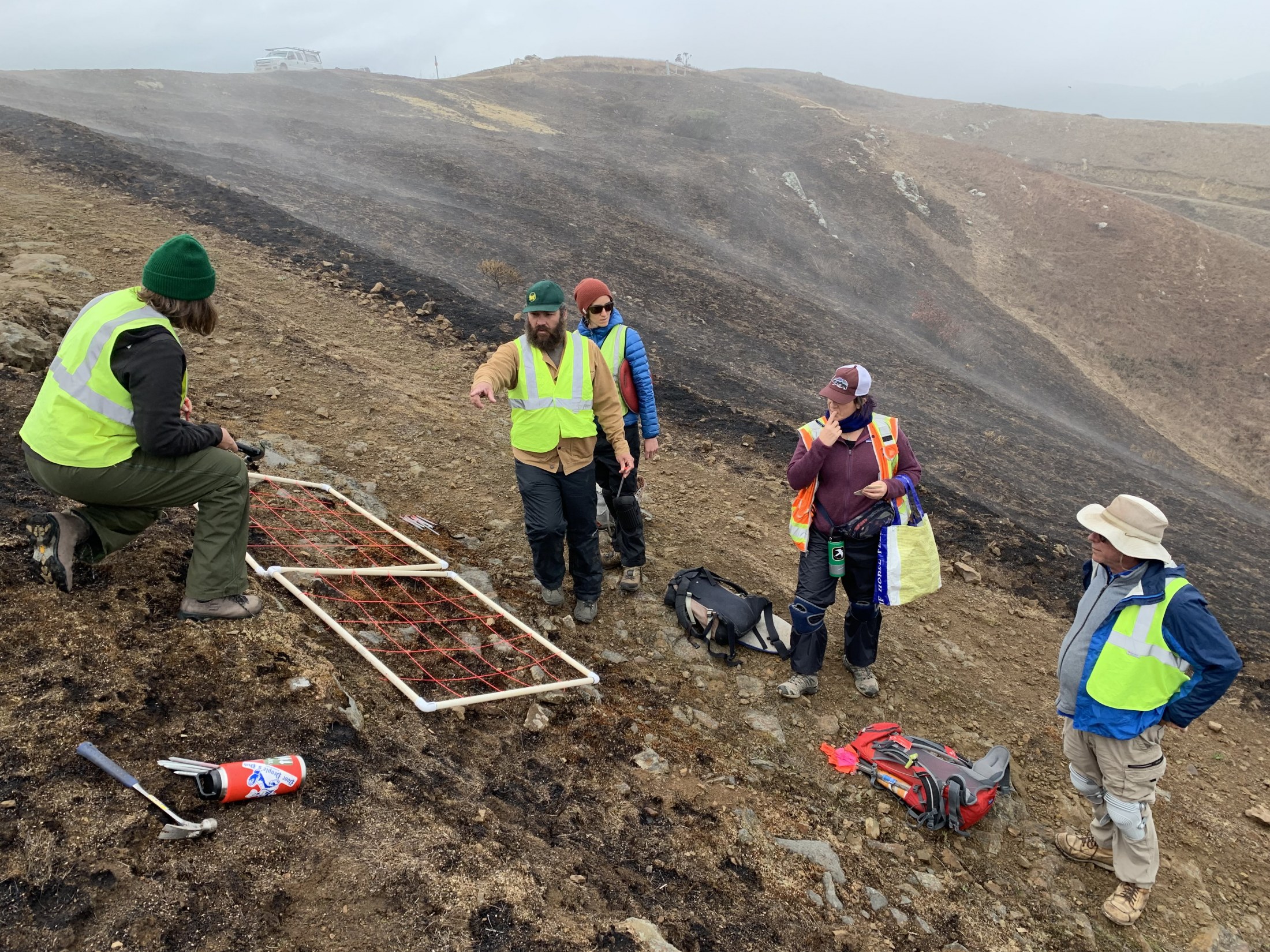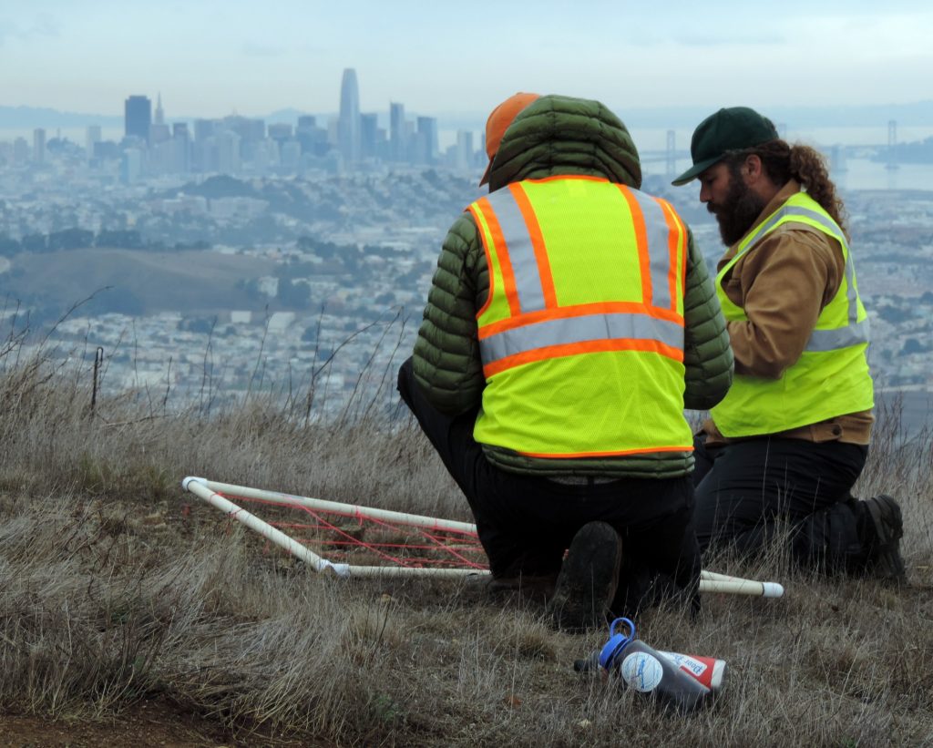 The Mission Blue Butterfly exists only in the same locations as it’s host plants. It primarily uses silver lupine (Lupinus albifrons) and summer lupine (Lupinus formosus) as a larval host. To date, direct seeding at San Bruno Mountain (SBM) has augmented over 7500m2 of Mission Blue habitat, expanded the ridge population of summer lupine over 500m to the west, established a new population of summer lupine at a distant site on northwestern San Bruno Mountain and has created two new populations of summer lupine at Twin Peaks. More than 30k lupine seeds, installation protocols, maps and training have been provided to staff and volunteers from partner organizations.