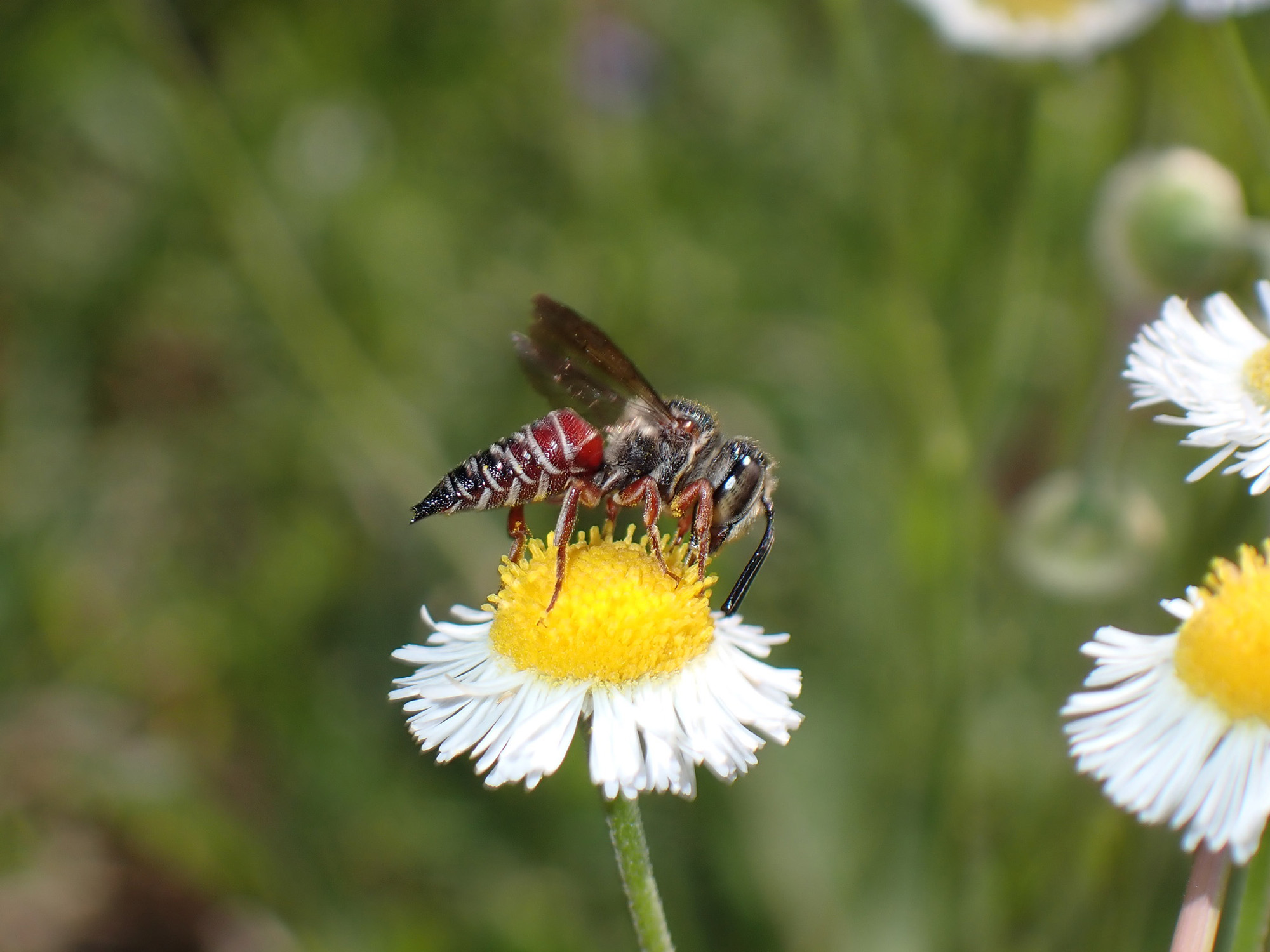 We’re used to seeing bees as fuzzy and black with yellow marking of some kind. And a lot of species stick to that general design with varying shades of yellow to gold stripes. Some look compact and sculpted for speed like expensive sports cars, while others are extra hairy like bumble bees.