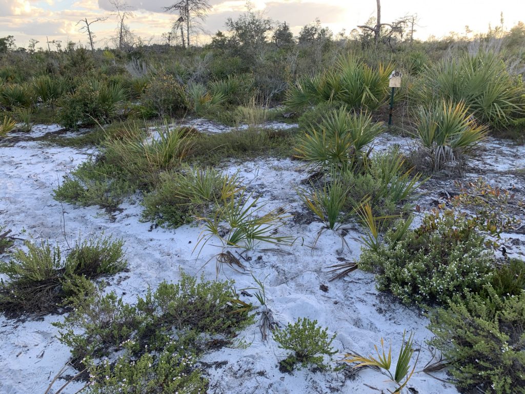 The Lake Wales Ridge’s rare species are a product of Florida’s geological history. When much of the state was underwater, higher elevation sand dune areas along the Central Florida ridge behaved almost like islands, producing isolated habitats. These unique environments led to pockets of specialized plants and animals, such as the blue calamintha bee, Daniels said. Today, the ridge is characterized by patches of pine scrub dotted among the orange groves along U.S. Route 27.