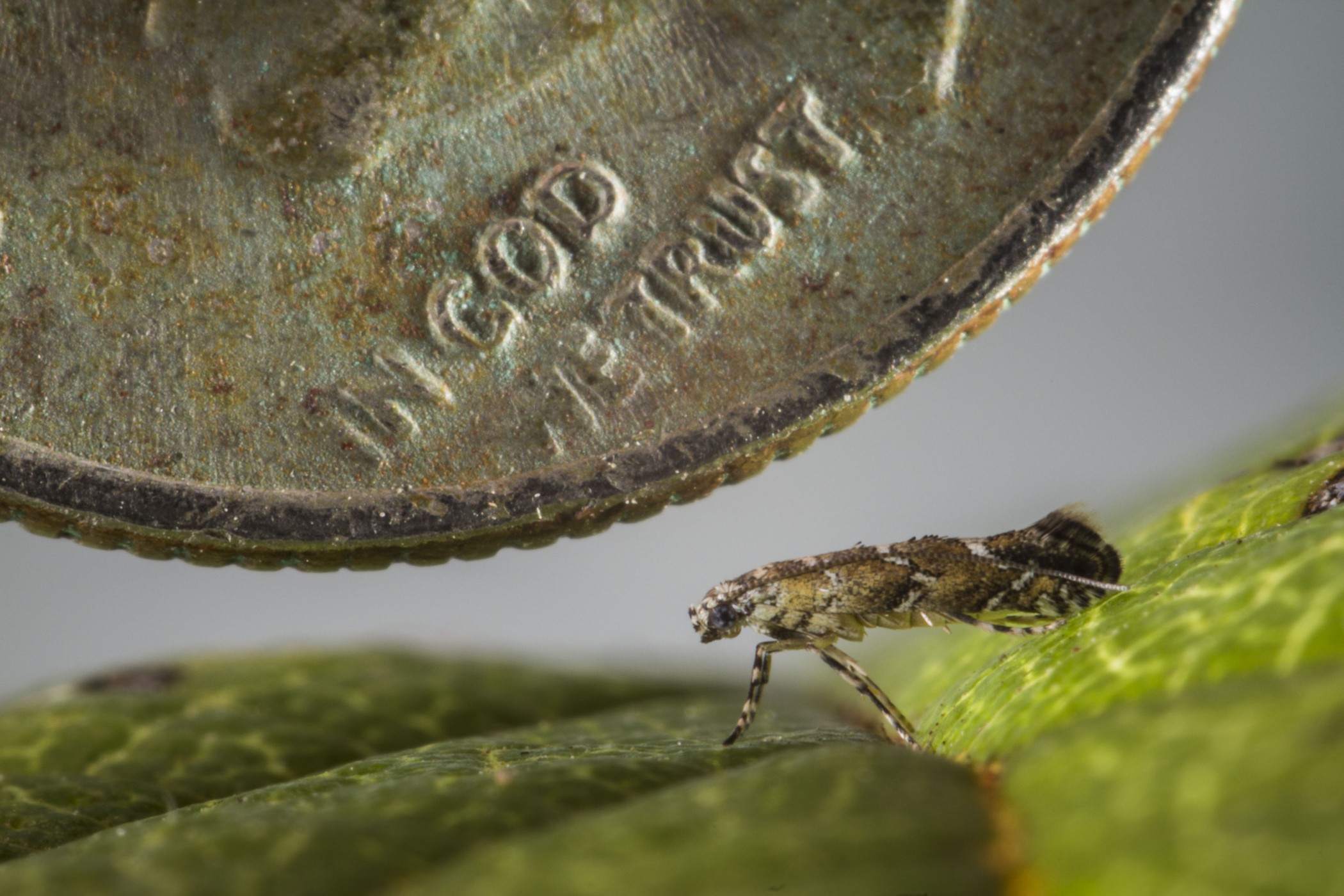 The adult moths are only a few millimeters long and difficult to find, but their larvae live inside the leaves of certain Hawaiian tropical plants, leaving distinctive and easily noticeable trails across the leaf as they feed.