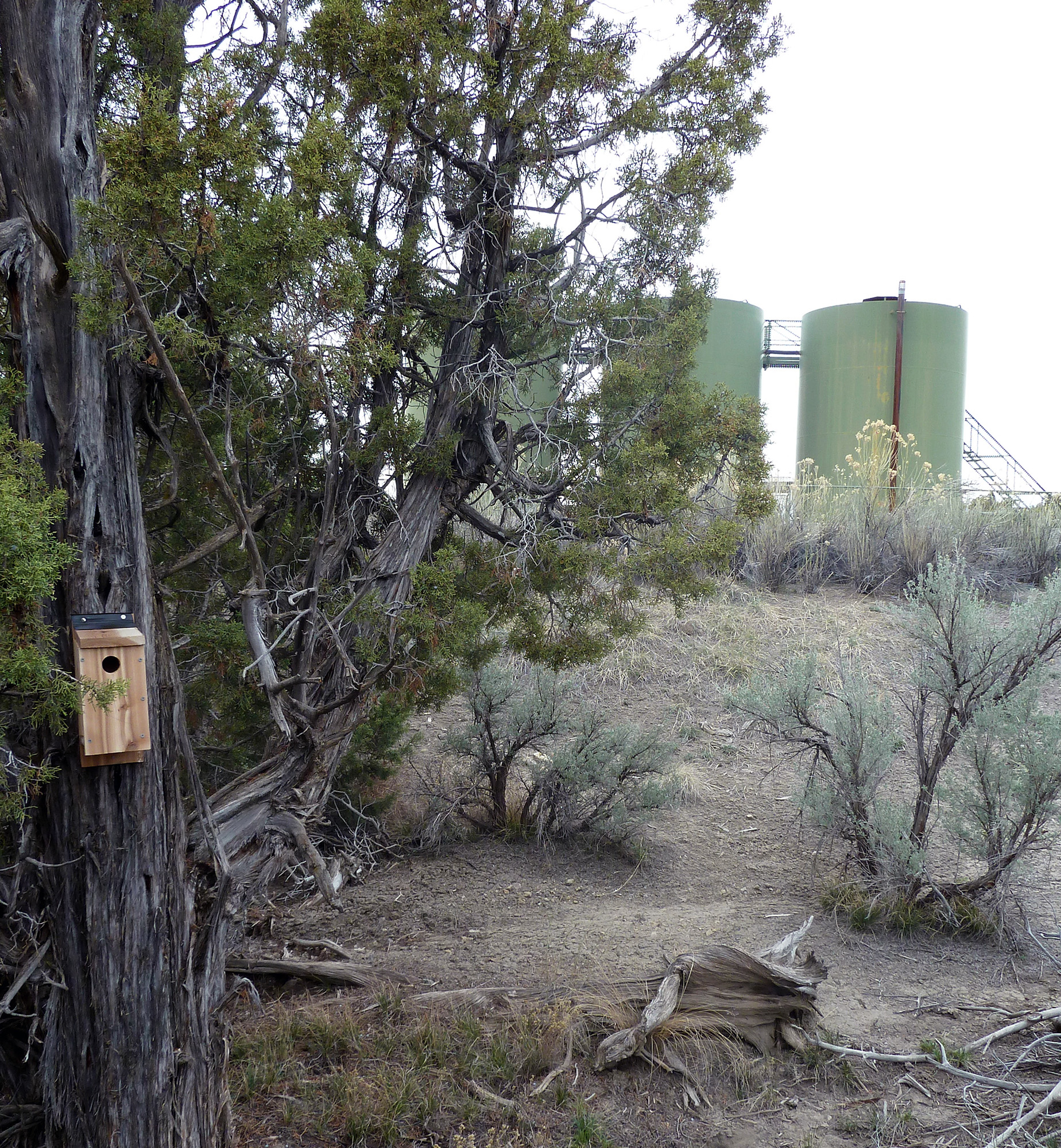 A western bluebird returns to its nestlings with food as a natural gas compressor drones in the background. Video courtesy of Nathan Kleist
