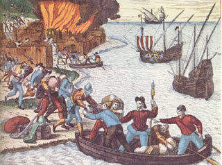 Searles and his men, sailing in a captured Spanish ship, attacked a surprised St. Augustine at midnight. As the town residents fled to the woods, the pirates killed 60 people, took many well-to do young women for ransom, and completely sacked the town. They did not burn it, however, causing the Spaniards to fear that Searles was planning to return and capture the colony.