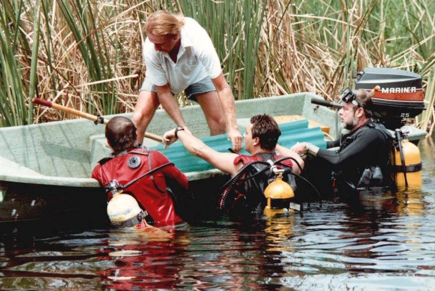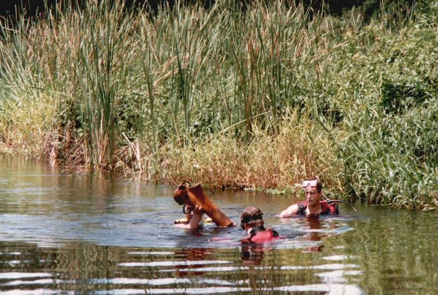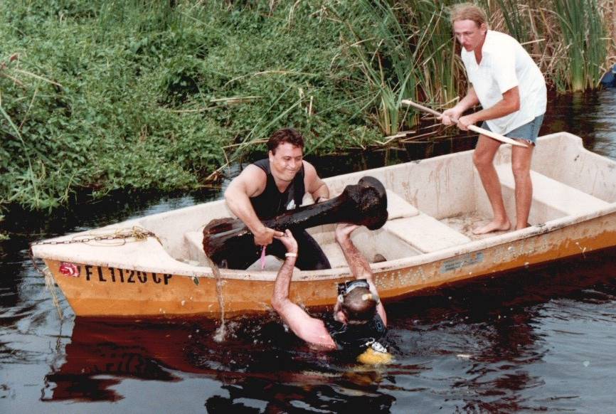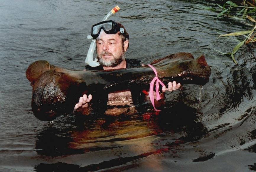 This sort of excavation must be done carefully and by an experienced team to prevent damage to both the fossils and the riverine ecosystems, but when done right–and with plenty of teamwork, as seen below–the discoveries can be remarkable. The photo series below from the Wekiva River dives documents some of the planning and effort that went into the excavation.